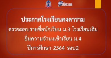 - ประกาศโรงเรียนคงคาราม การสอบเข้า ม.1 และ ม.4 - 22 มีนาคม2024