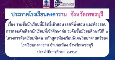 - ประกาศโรงเรียนคงคาราม การสอบเข้า ม.1 และ ม.4 - 22 มีนาคม2024