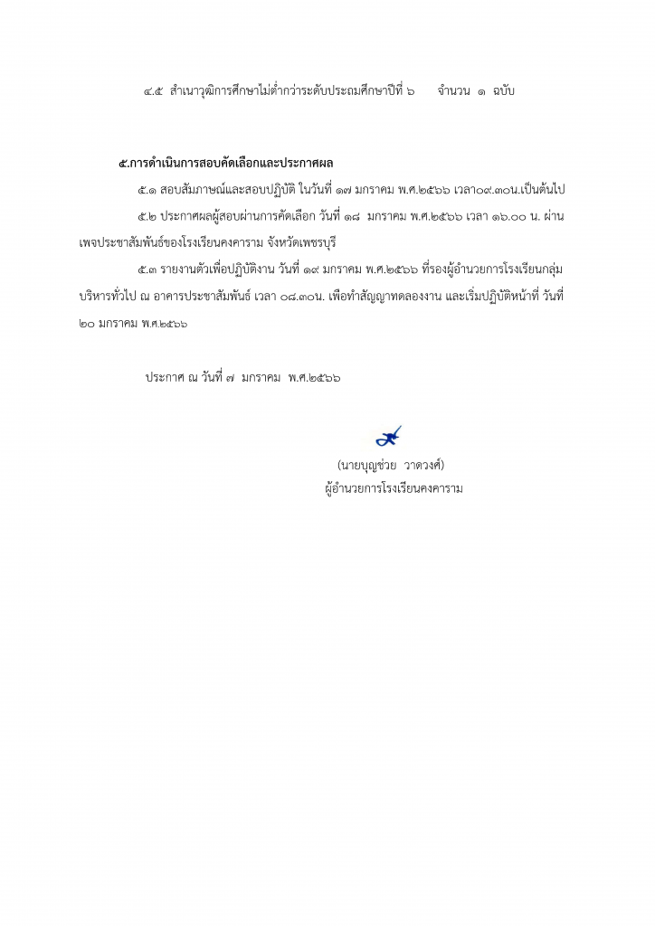 + ติดต่อรับใบสมัครด้วยตนเองที่อาคารประชาสัมพันธ์ โรงเรียนคงคาราม จังหวัดเพชรบุรีระหว่างวันที่ ๗ -๑๓ มกราคม พ.ศ.๒๕๖๖ ตั้งแต่เวลา๐๘.๓๐ น.-๑๖.๐๐น.