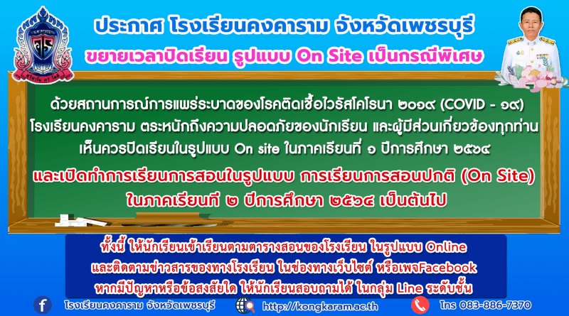 ขยายเวลาปิดเรียน รูปแบบ On Site เป็นกรณีพิเศษ