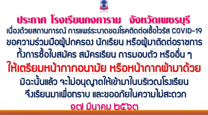 ประกาศ โรงเรียนคงคาราม จังหวัดเพชรบุรี