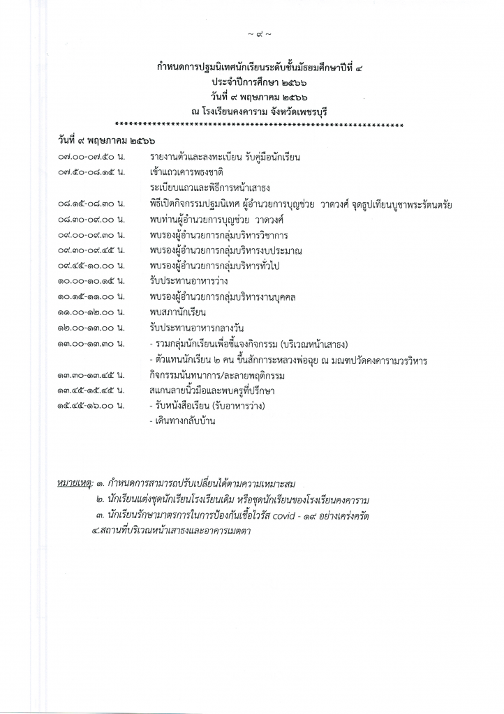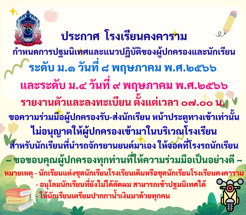 หมายเหตุ – นักเรียนแต่งชุดนักเรียนโรงเรียนเดิมหรือชุดนักเรียนโรงเรียนคงคาราม