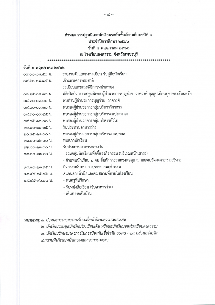 กำหนดการปฐมนิเทศ ปีการศึกษา 2566