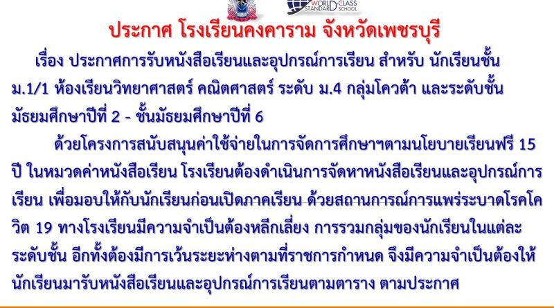 ประกาศ โรงเรียนคงคาราม จังหวัดเพชรบุรี
