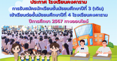 - ประกาศโรงเรียนคงคาราม การสอบเข้า ม.1 และ ม.4 - 22 มีนาคม2024