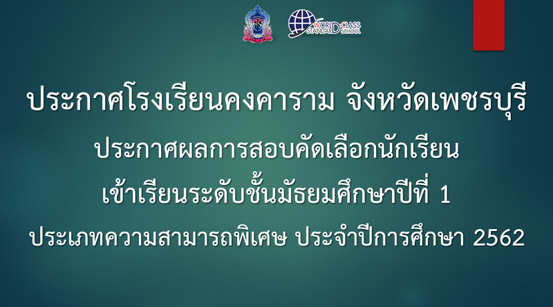 ประกาศผลการสอบคัดเลือกนักเรียน เข้าเรียน ม. 1 ประเภทความสามารถพิเศษ ประจำปีการศึกษา 2562