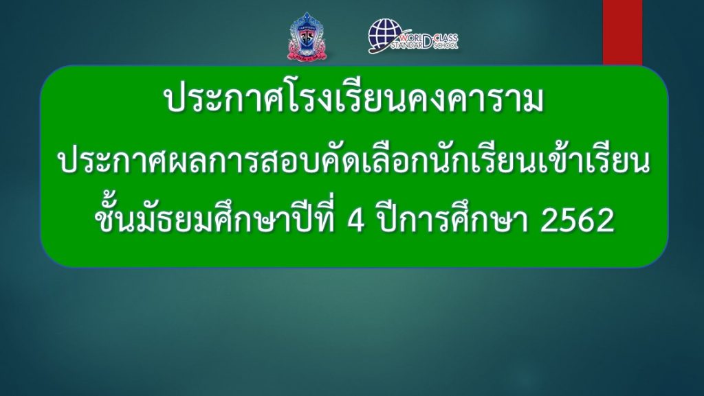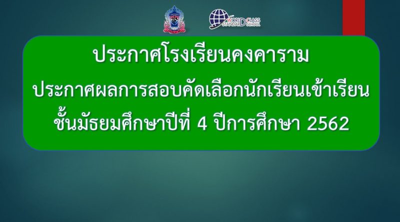ประกาศผลการสอบคัดเลือกนักเรียนเข้าเรียน ชั้นมัธยมศึกษาปีที่ 4 ปีการศึกษา 2562