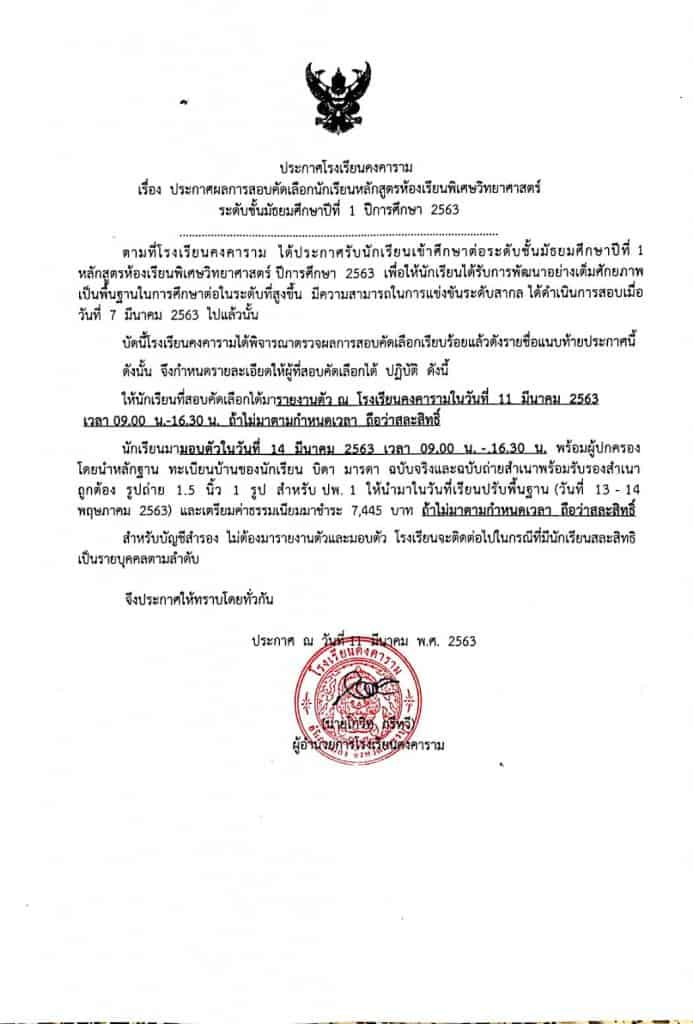 - ประกาศโรงเรียนคงคาราม การสอบเข้า ม.1 และ ม.4 - 22 มีนาคม2024