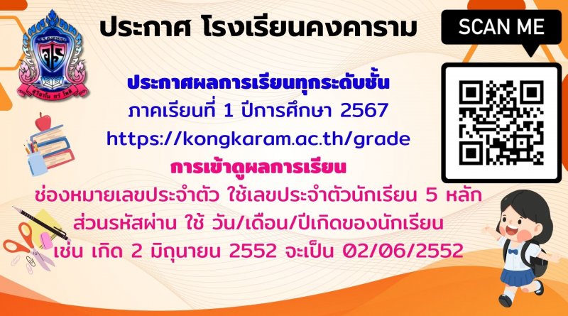 ประกาศผลการเรียนทุกระดับชั้น 1/2567