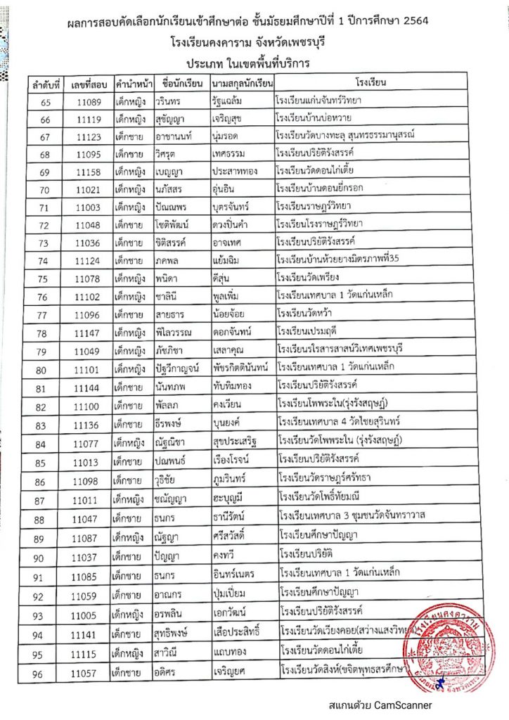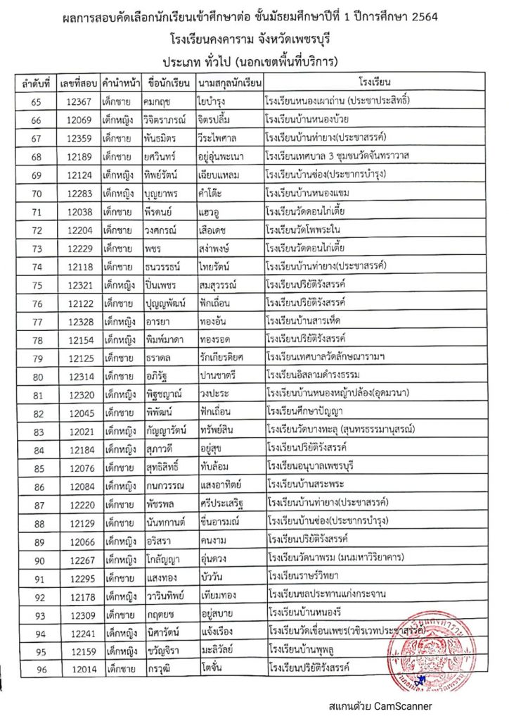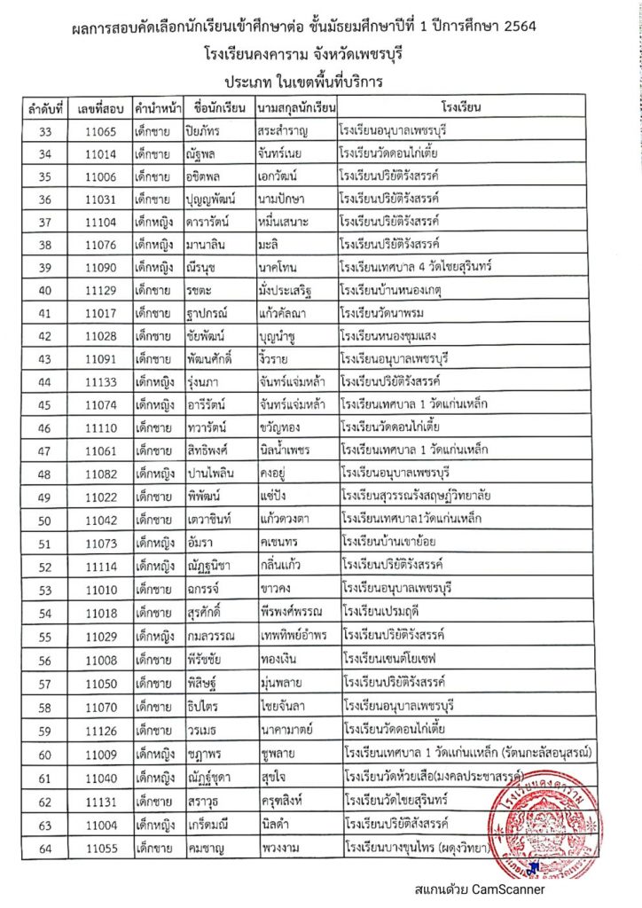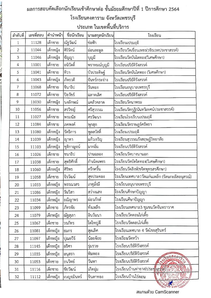 เรื่อง ประกาศผลการสอบคัดเลือกนักเรียน ระดับชั้นมัธยมศึกษาปีที่ 1 ประเภทนักเรียนความสามารถพิเศษ ประเภทนักเรียนในเขตพื้นที่บริการ และประเภทนักเรียนทั่วไป (นอกเขตพื้นที่บริการ) ปีการศึกษา 2564