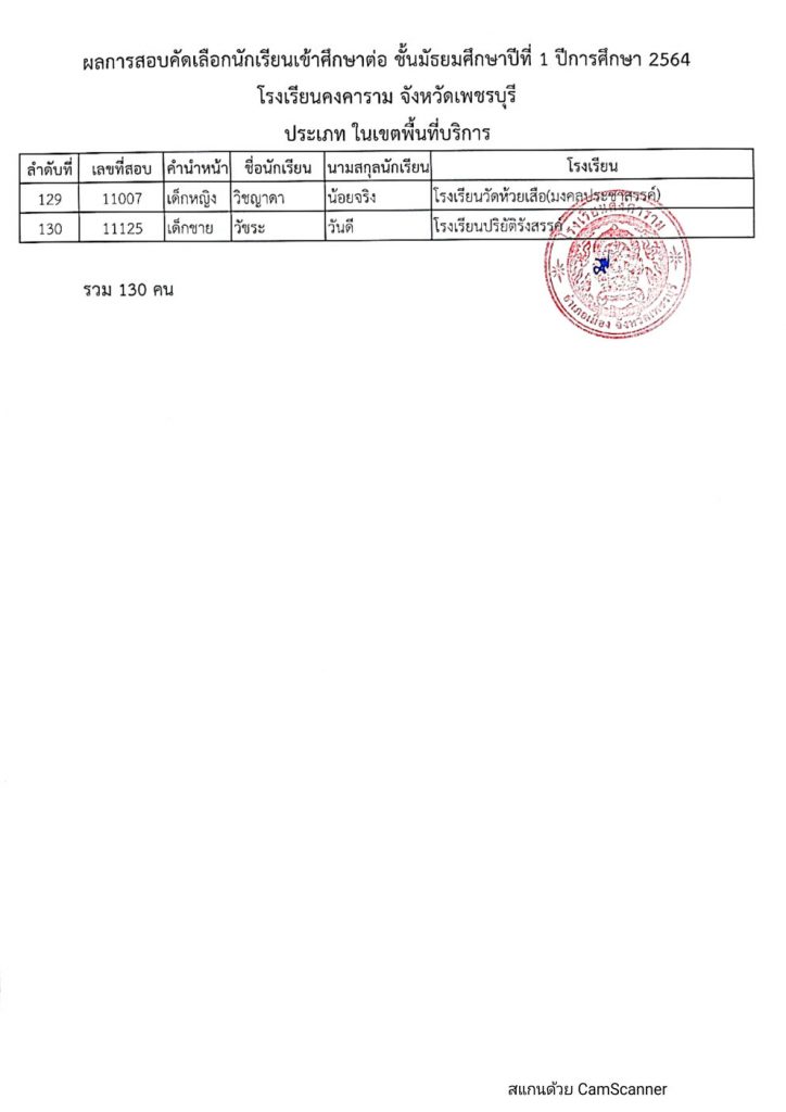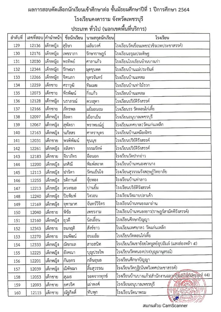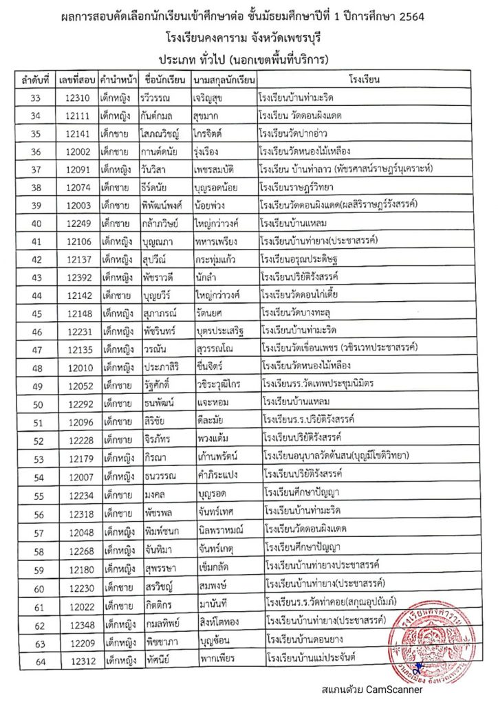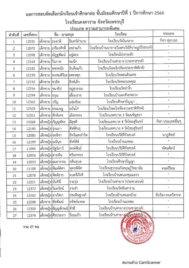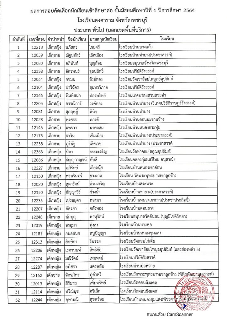 ประกาศโรงเรียนคงคาราม จังหวัดเพชรบุรี