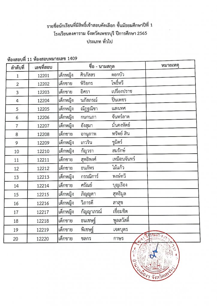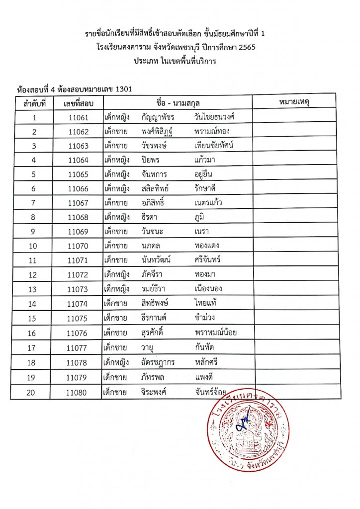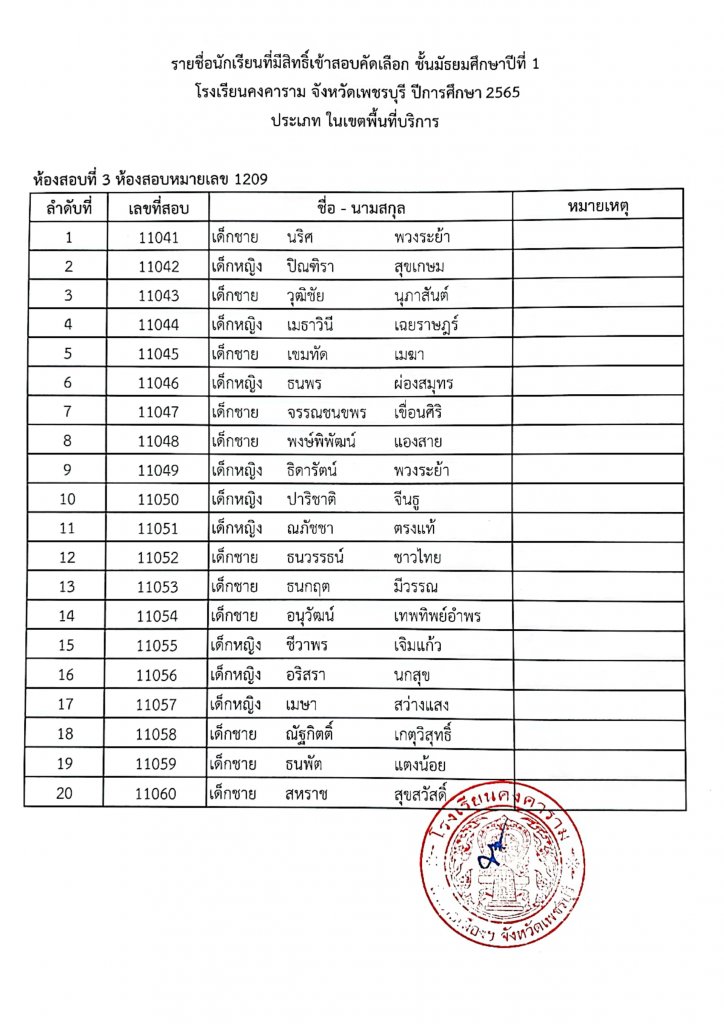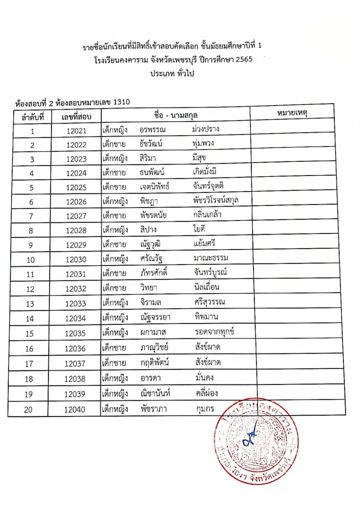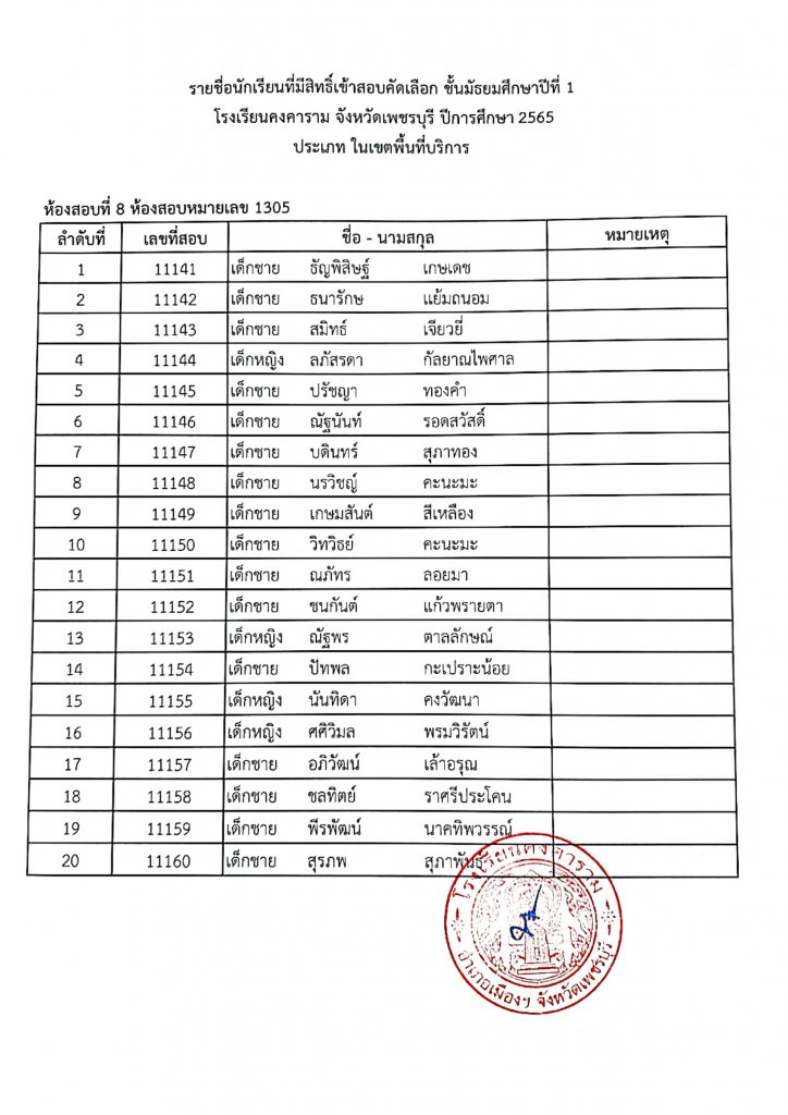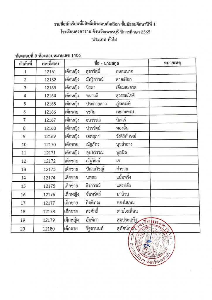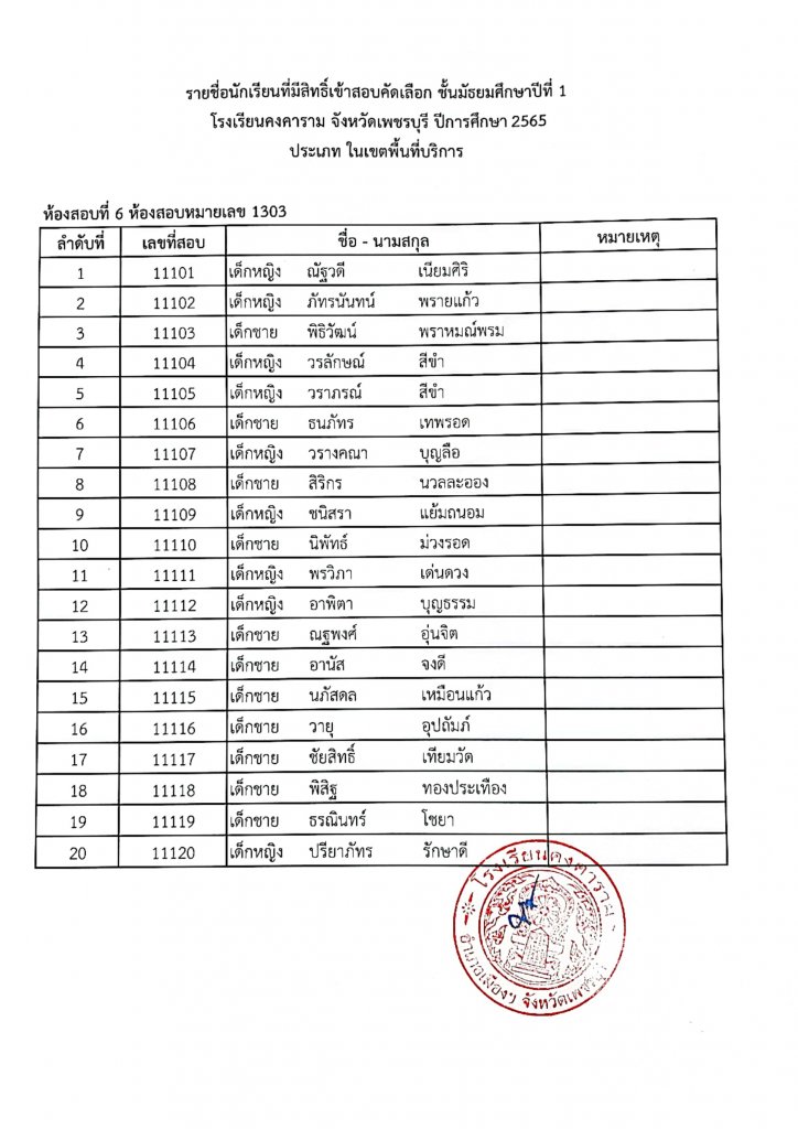 ประกาศรายชื่อเข้าสอบ ม.1 ปีการศึกษา 2565