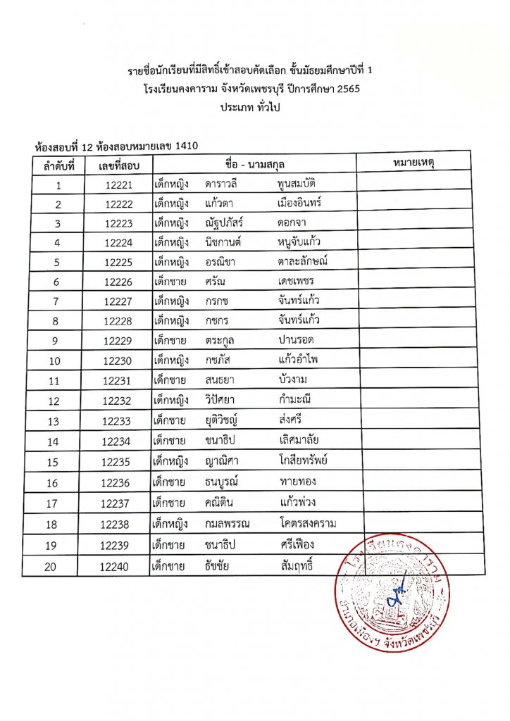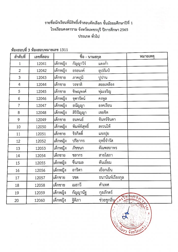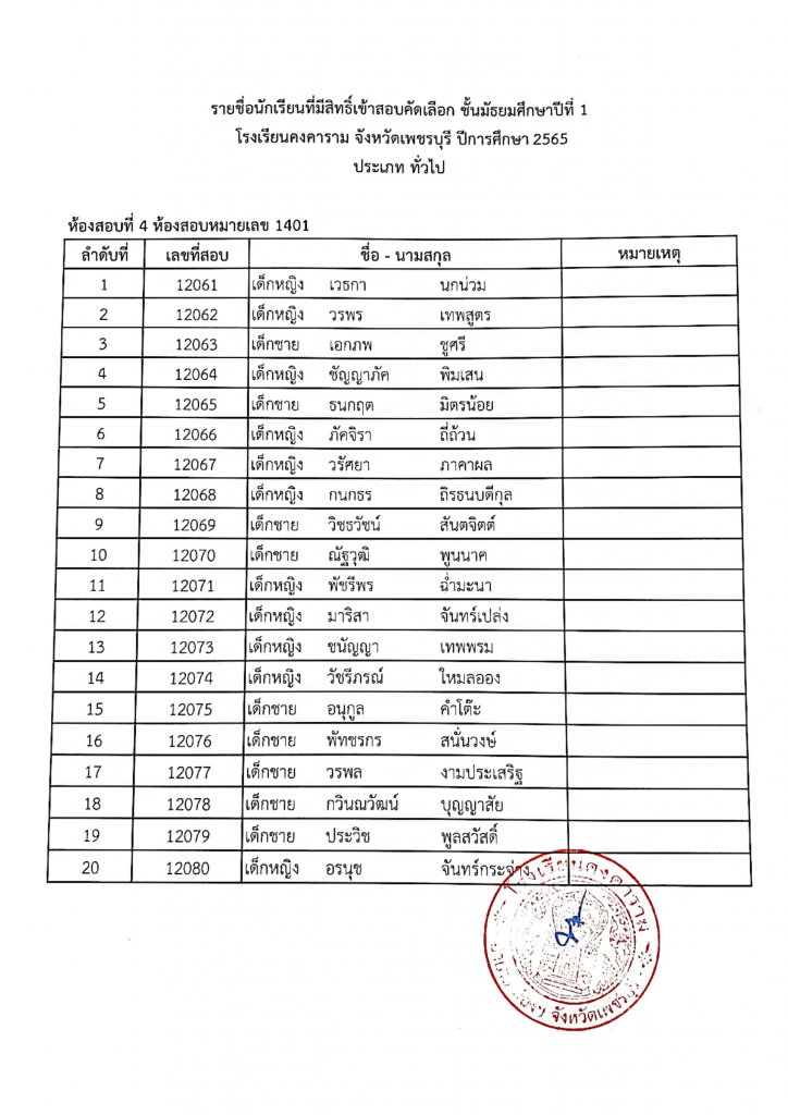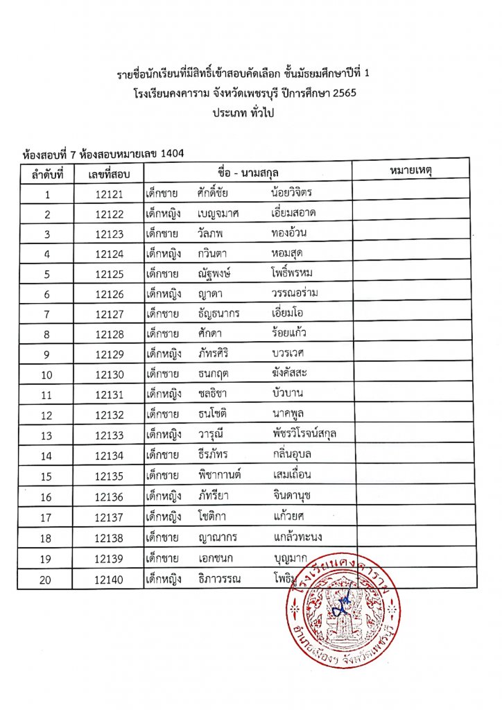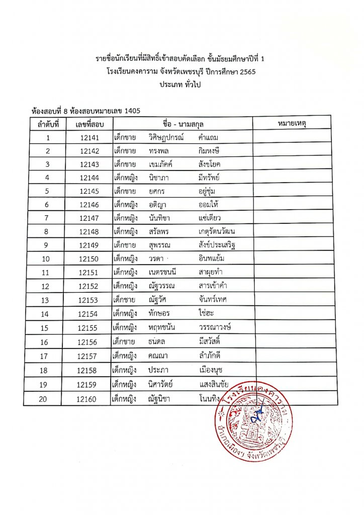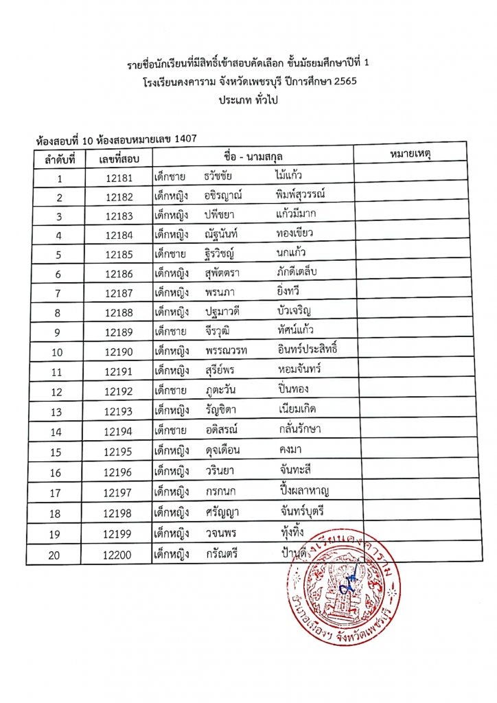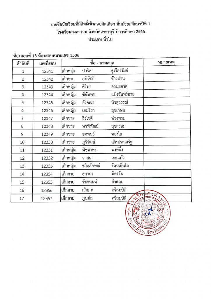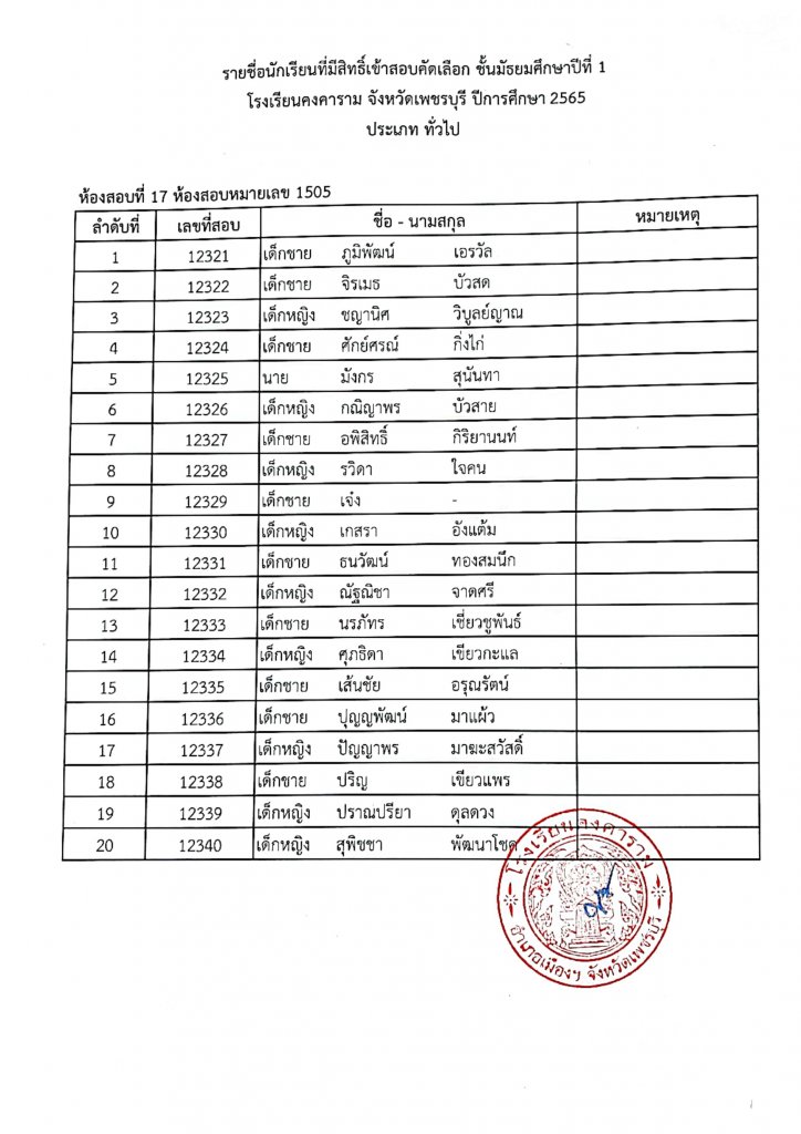 ทางโรงเรียนคงคาราม จึงขอประกาศรายชื่อนักเรียนผู้มีสิทธิ์เข้าสอบคัดเลือกเป็นนักเรียนชั้นมัธยมศึกษาปีที่ 1 ปีการศึกษา 2565 ประเภท ในเขตพื้นที่บริการและประเภททั่วไป ตามรายชื่อแนบท้าย และขอแจ้ง
