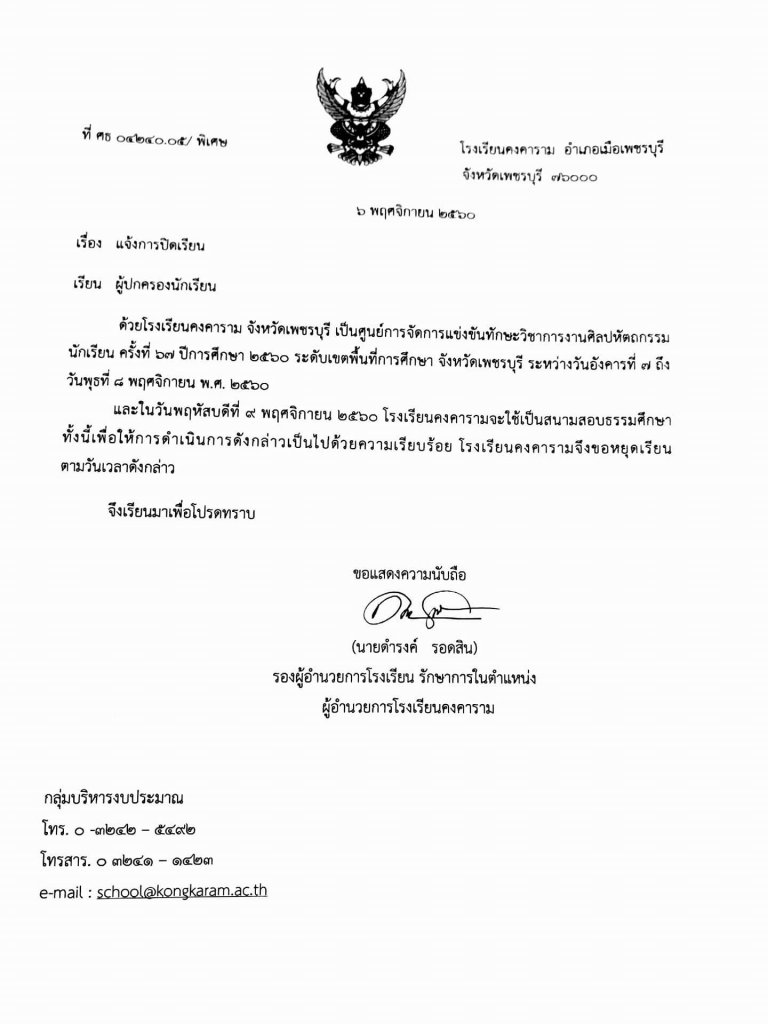 ประกาศ โรงเรียนคงคาราม  จังหวัดเพชรบุรี