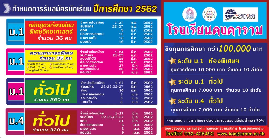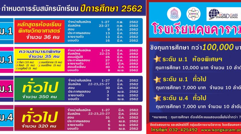 - ประกาศโรงเรียนคงคาราม การสอบเข้า ม.1 และ ม.4 - 22 มีนาคม2024