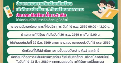 - ประกาศโรงเรียนคงคาราม การสอบเข้า ม.1 และ ม.4 - 22 มีนาคม2024