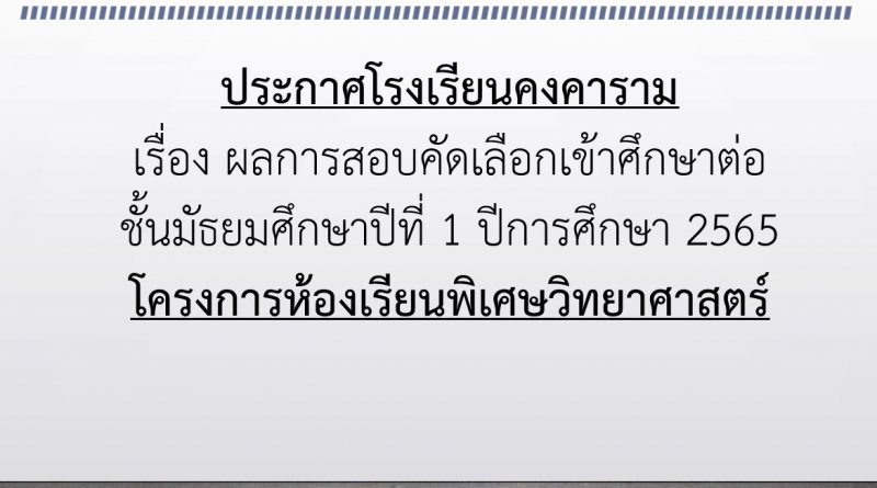 เรื่อง ผลการสอบคัดเลือกนักเรียนเข้าศึกษาต่อ ชั้นมัธยมศึกษาปีที่ 1 ปีการศึกษา 2565