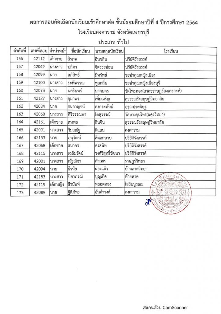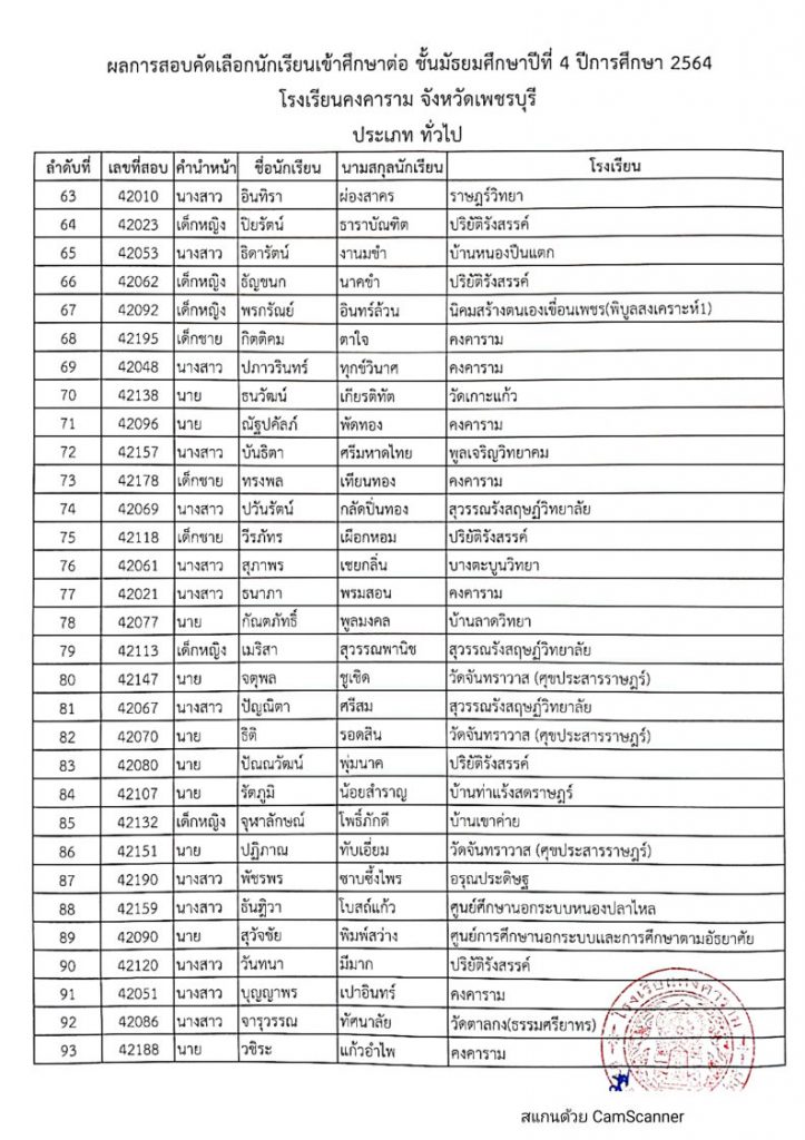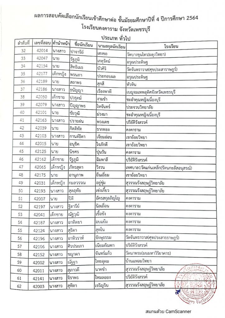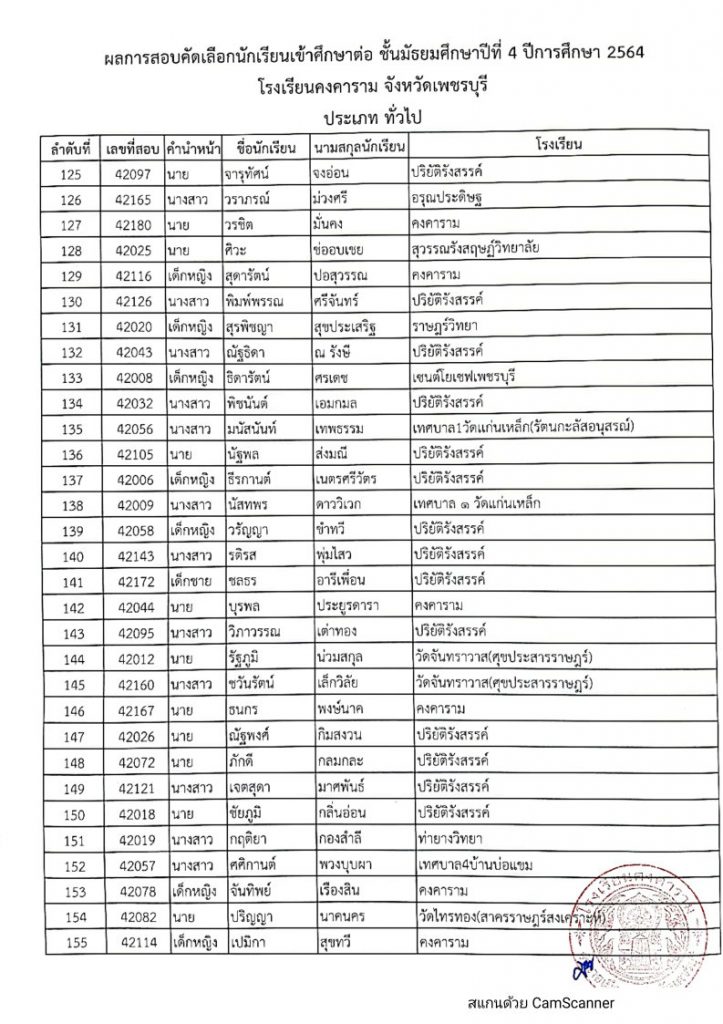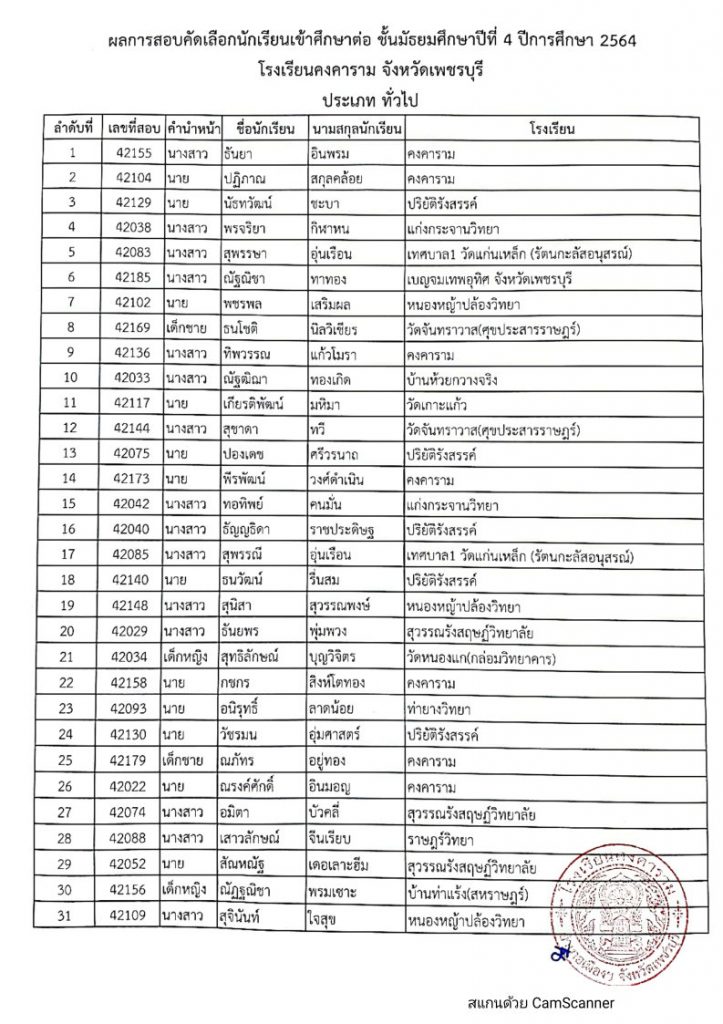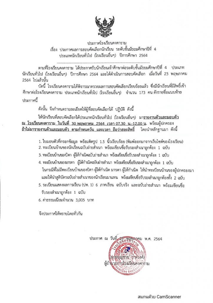 ดังนั้น ให้นักเรียนที่สอบคัดเลือกได้ประเภทนักเรียนทั่วไป (โรงเรียนอื่นๆ) มารายงานตัวและมอบตัว ณ โรงเรียนคงคาราม ในวันที่ 30 พฤษภาคม 2564 เวลา 07.30 น.-12.00 น. พร้อมผู้ปกครอง ถ้าไม่มารายงานตัวและมอบตัว ตามกำหนดวัน และเวลา ถือว่าสละสิทธิ์