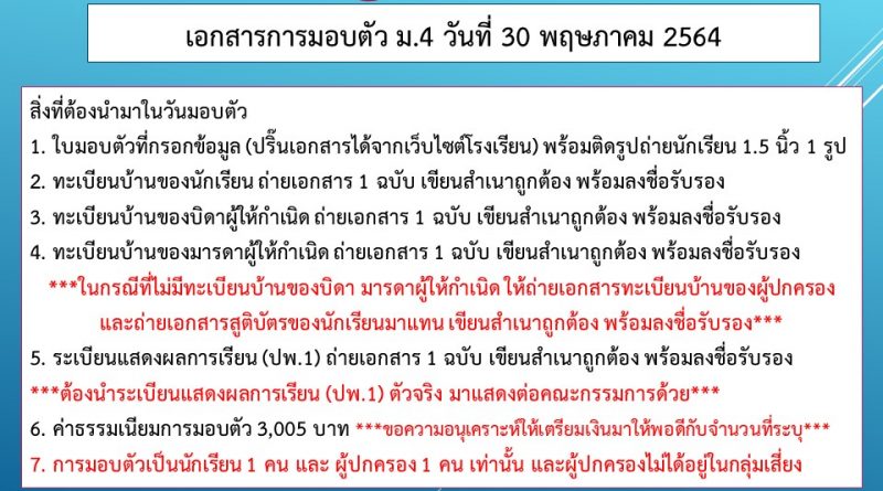 บมอบตัวนักเรียน ม.4 ปีการศึกษา 2564