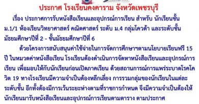 - ประกาศโรงเรียนคงคาราม การสอบเข้า ม.1 และ ม.4 - 22 มีนาคม2024
