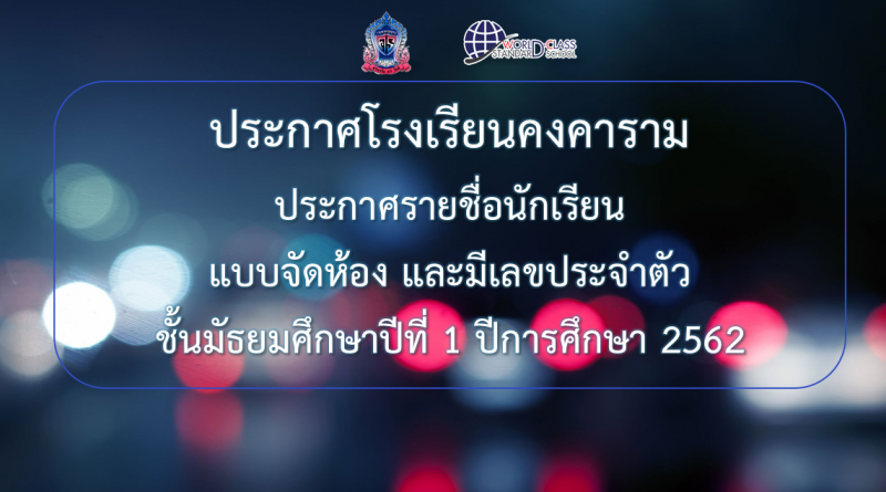 รายชื่อนักเรียน ม.1ปีการศึกษา2562 แบบจัดห้องและมีเลขประจำตัว