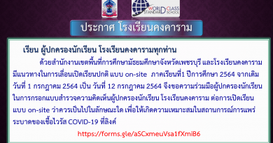 - ประกาศโรงเรียนคงคาราม การสอบเข้า ม.1 และ ม.4 - 22 มีนาคม2024