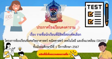 - ประกาศโรงเรียนคงคาราม การสอบเข้า ม.1 และ ม.4 - 22 มีนาคม2024