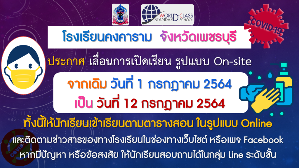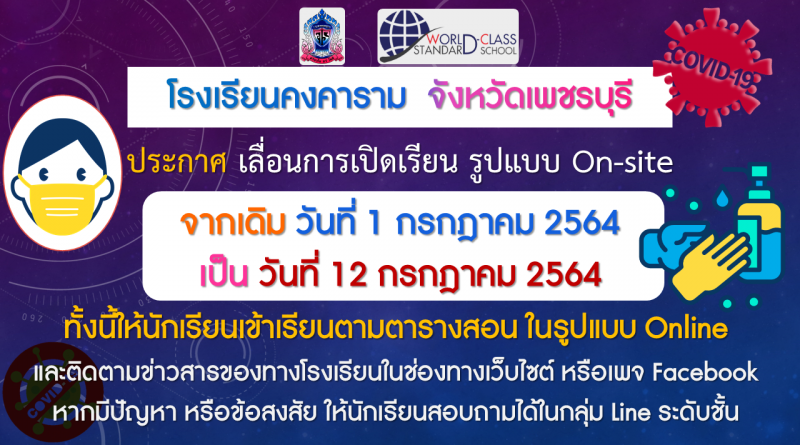 ประกาศ เลื่อนการเปิดเรียน รูปแบบ On-site