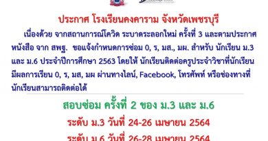- ประกาศโรงเรียนคงคาราม การสอบเข้า ม.1 และ ม.4 - 22 มีนาคม2024