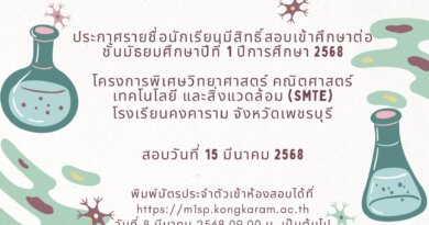 - ประกาศโรงเรียนคงคาราม การสอบเข้า ม.1 และ ม.4 - 22 มีนาคม2024