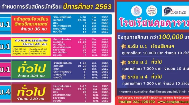 - ประกาศโรงเรียนคงคาราม การสอบเข้า ม.1 และ ม.4 - 22 มีนาคม2024