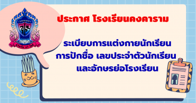 - ประกาศโรงเรียนคงคาราม การสอบเข้า ม.1 และ ม.4 - 22 มีนาคม2024