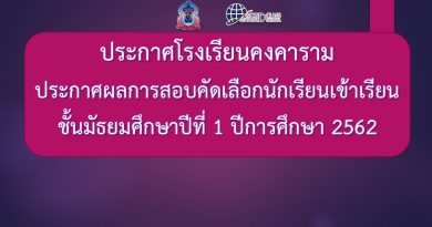 - ประกาศโรงเรียนคงคาราม การสอบเข้า ม.1 และ ม.4 - 22 มีนาคม2024