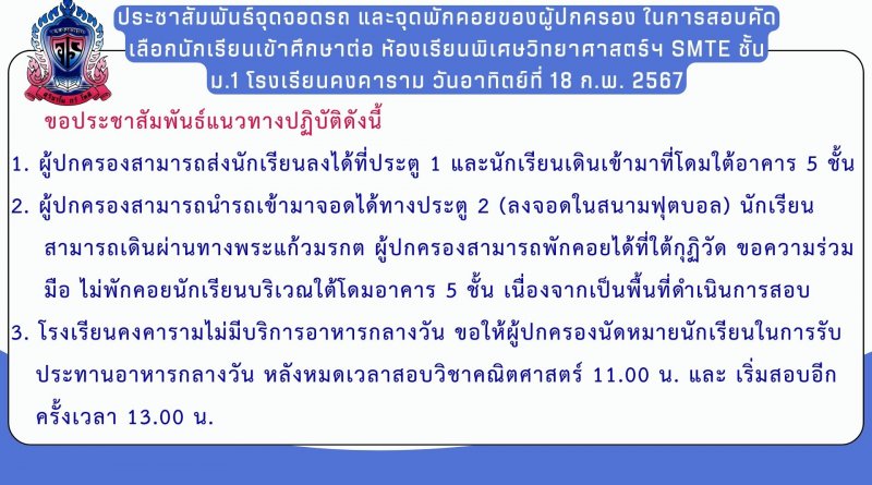 ประชาสัมพันธ์จุดจอดรถ และจุดพักคอยของผู้ปกครอง