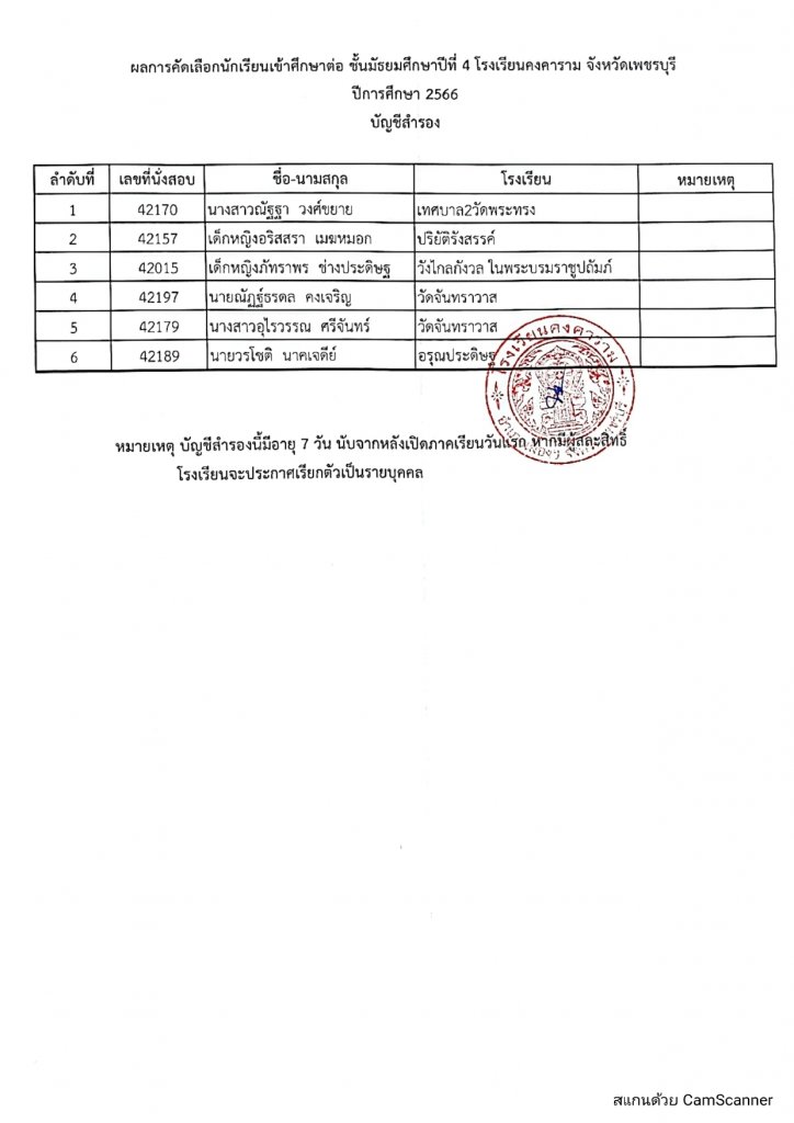 7. นักเรียนต้องตรวจสอบรายชื่อผู้ผ่านการคัดเลือกและลำดับที่ให้ชัดเจนจากเว็บไซต์ หรือ Facebook โรงเรียนคงคาราม