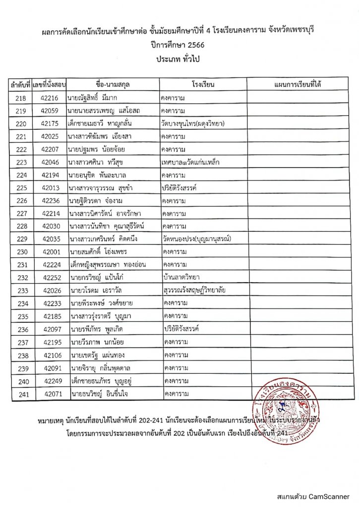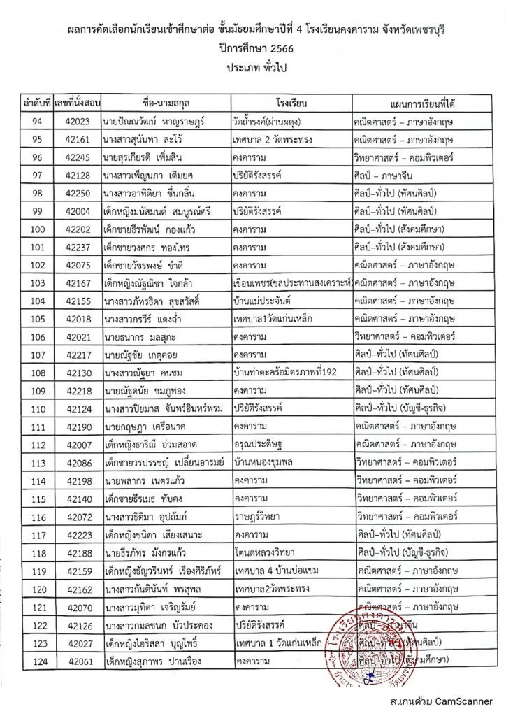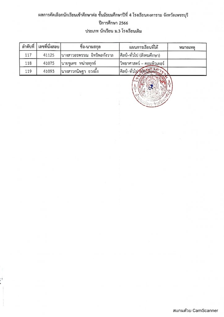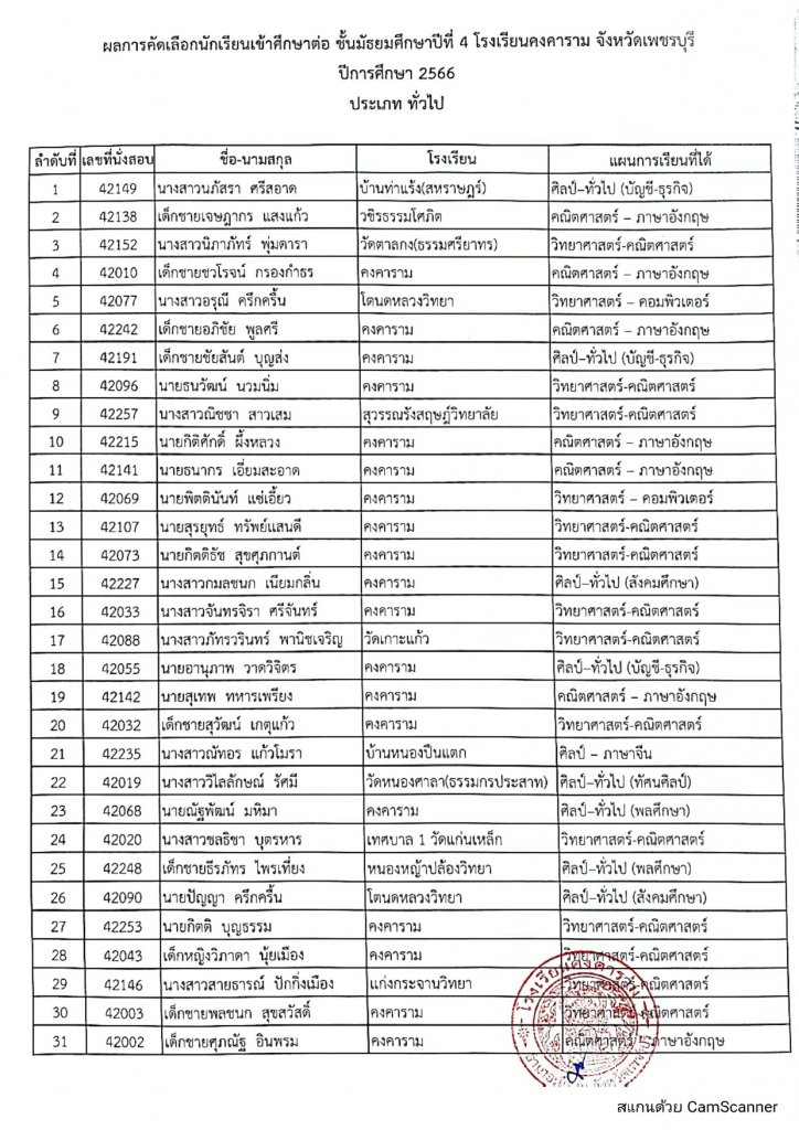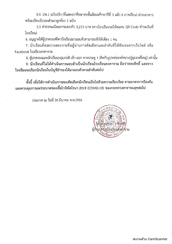 7. นักเรียนต้องตรวจสอบรายชื่อผู้ผ่านการคัดเลือกและลำดับที่ให้ชัดเจนจากเว็บไซต์ หรือ Facebook โรงเรียนคงคาราม