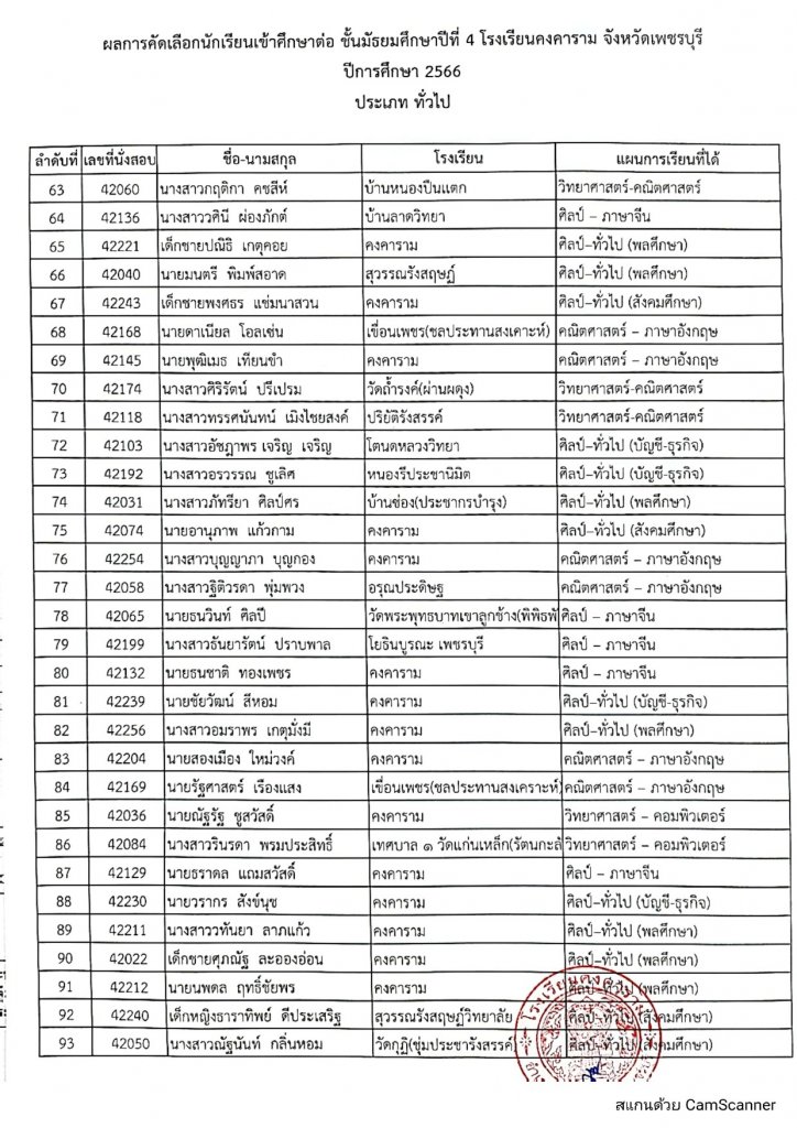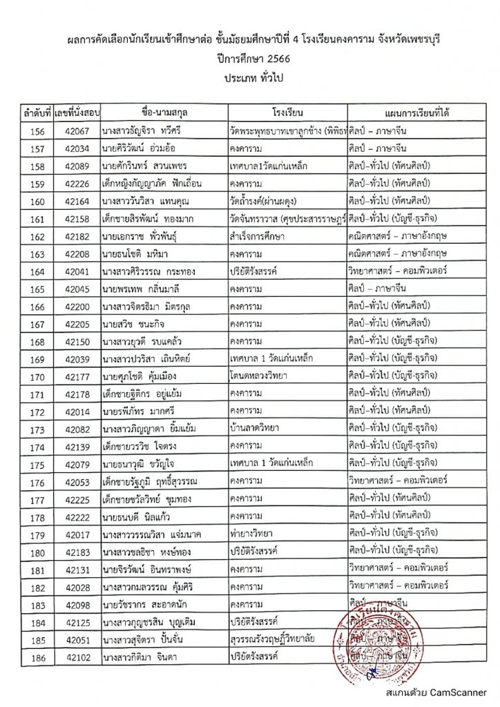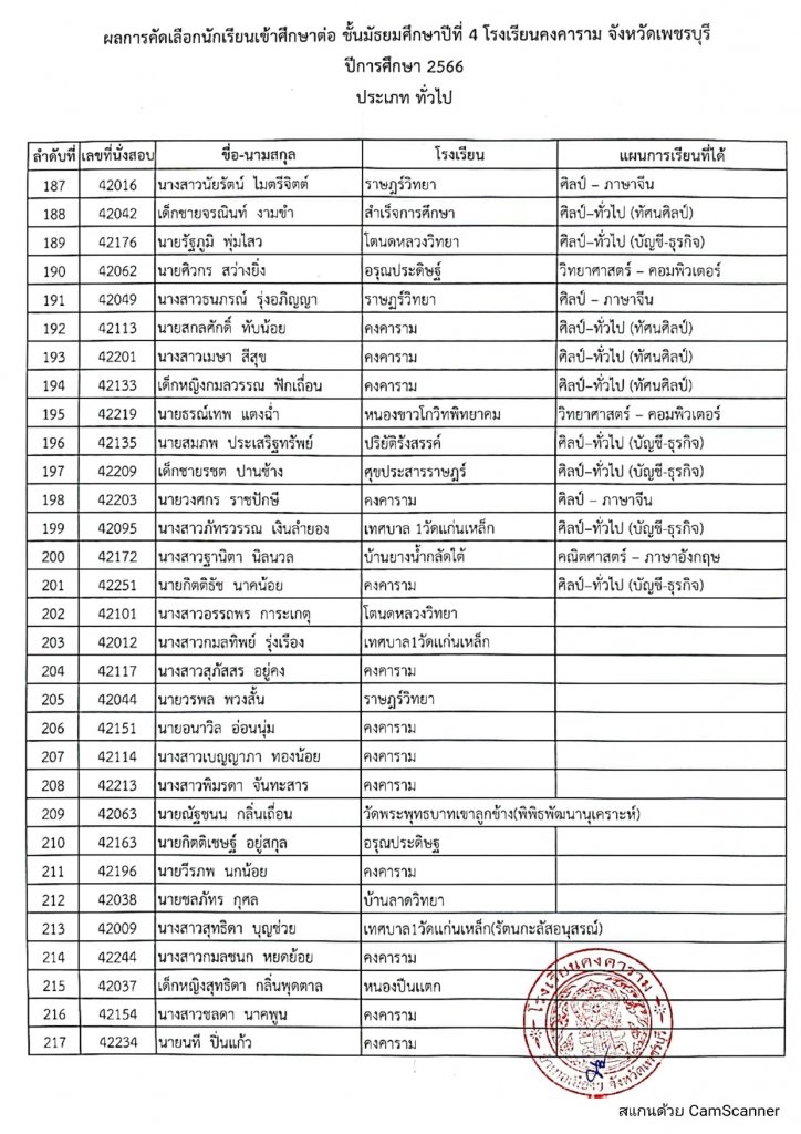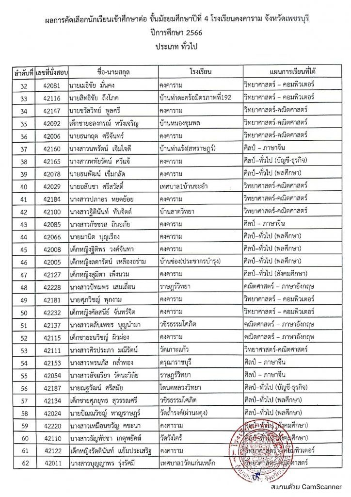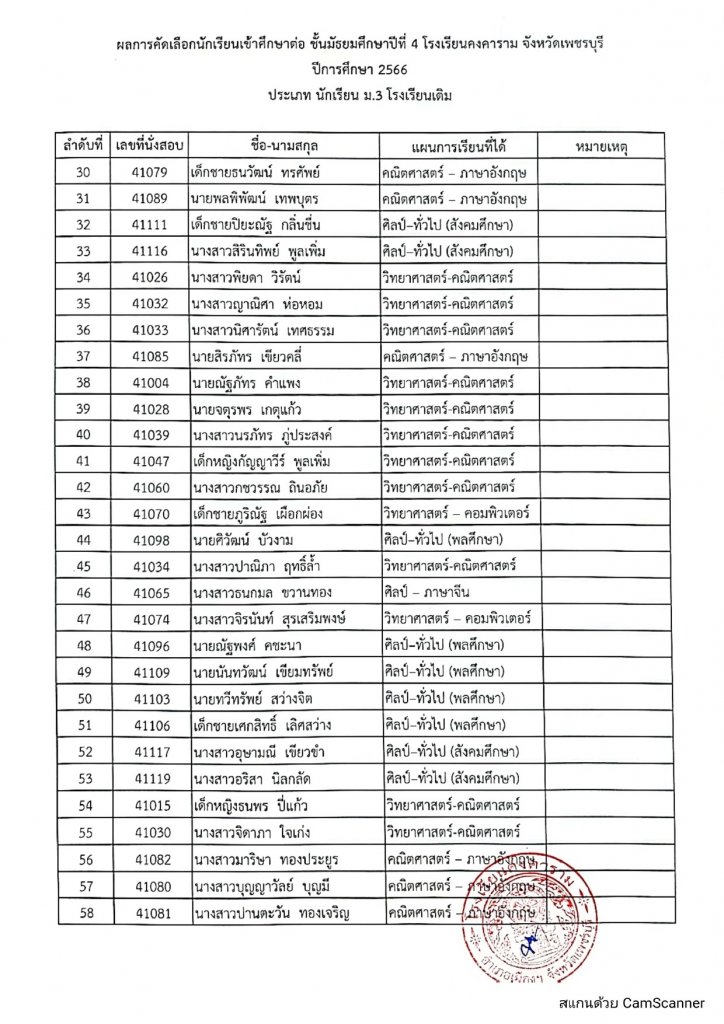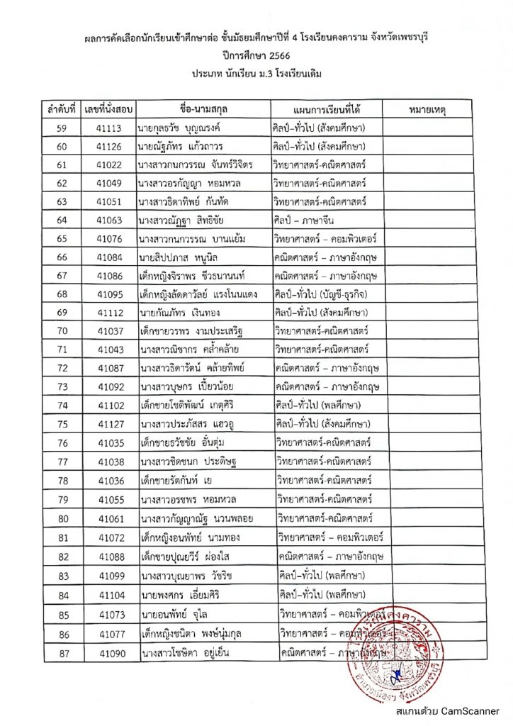 7. นักเรียนต้องตรวจสอบรายชื่อผู้ผ่านการคัดเลือกและลำดับที่ให้ชัดเจนจากเว็บไซต์ หรือ Facebook โรงเรียนคงคาราม