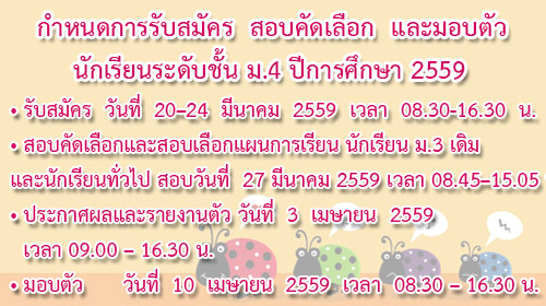 - รับสมัคร ม.3(เดิม)เข้า ม.4 ปีการศึกษา 2567 - 16 ธันวาคม2023