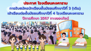 - ประกาศโรงเรียนคงคาราม การสอบเข้า ม.1 และ ม.4 - 22 มีนาคม2024