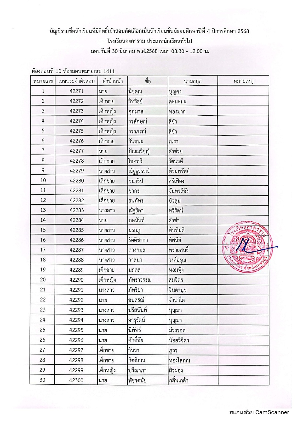 ประกาศรายชื่อนักเรียนที่มีสิทธิ์สอบคัดเลือกเข้าศึกษาต่อระดับชั้น ม.4 ปีการศึกษา 2568