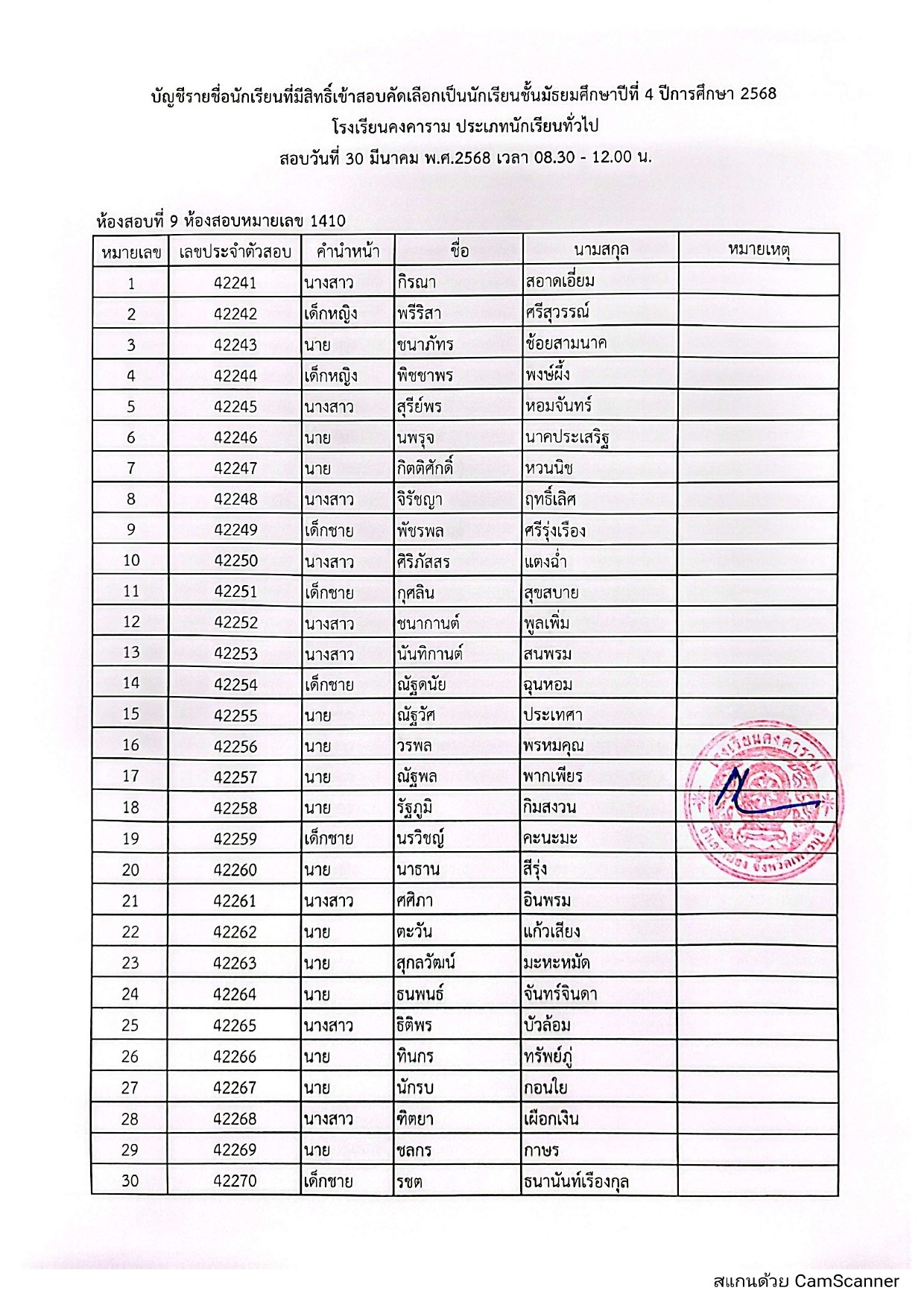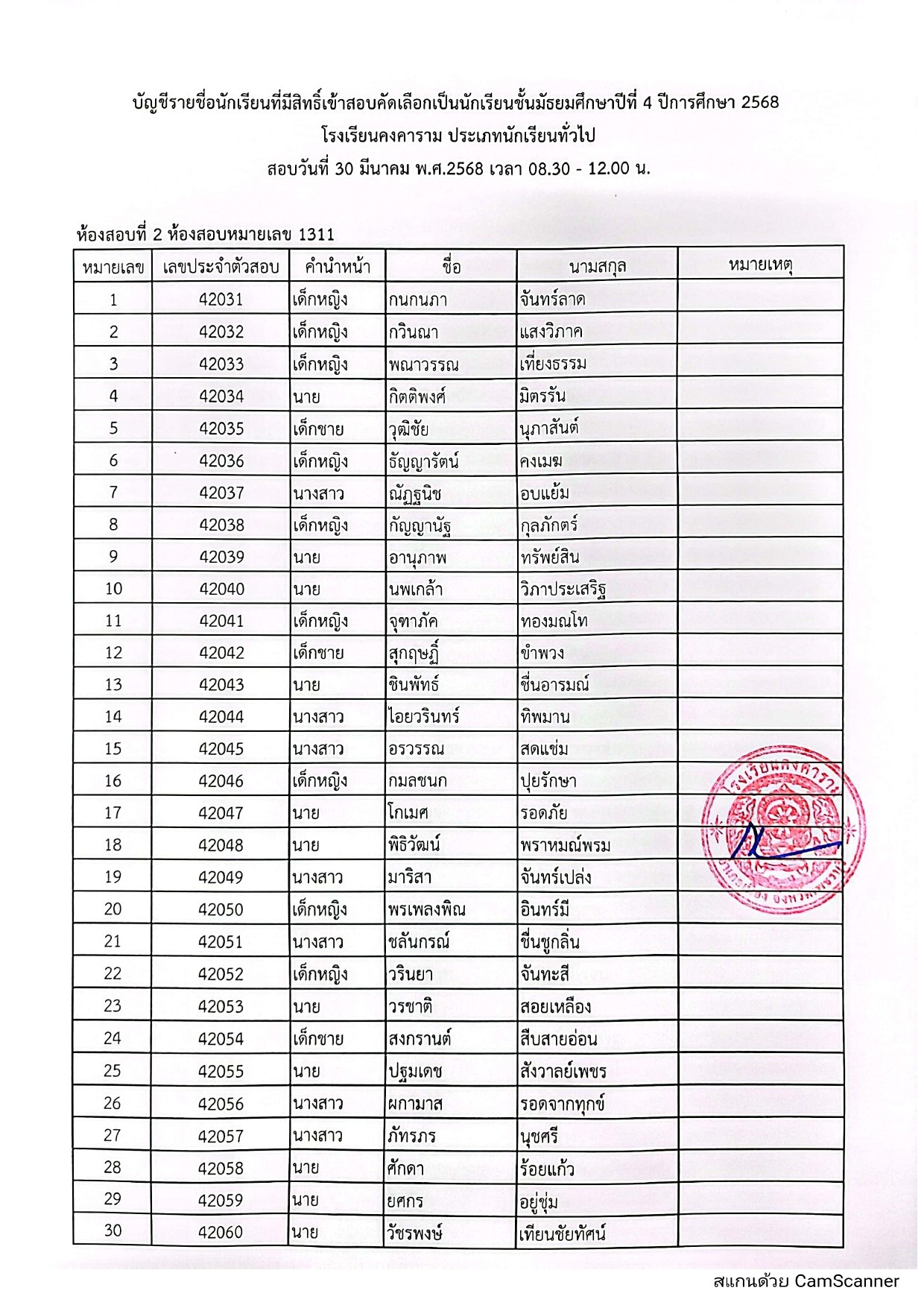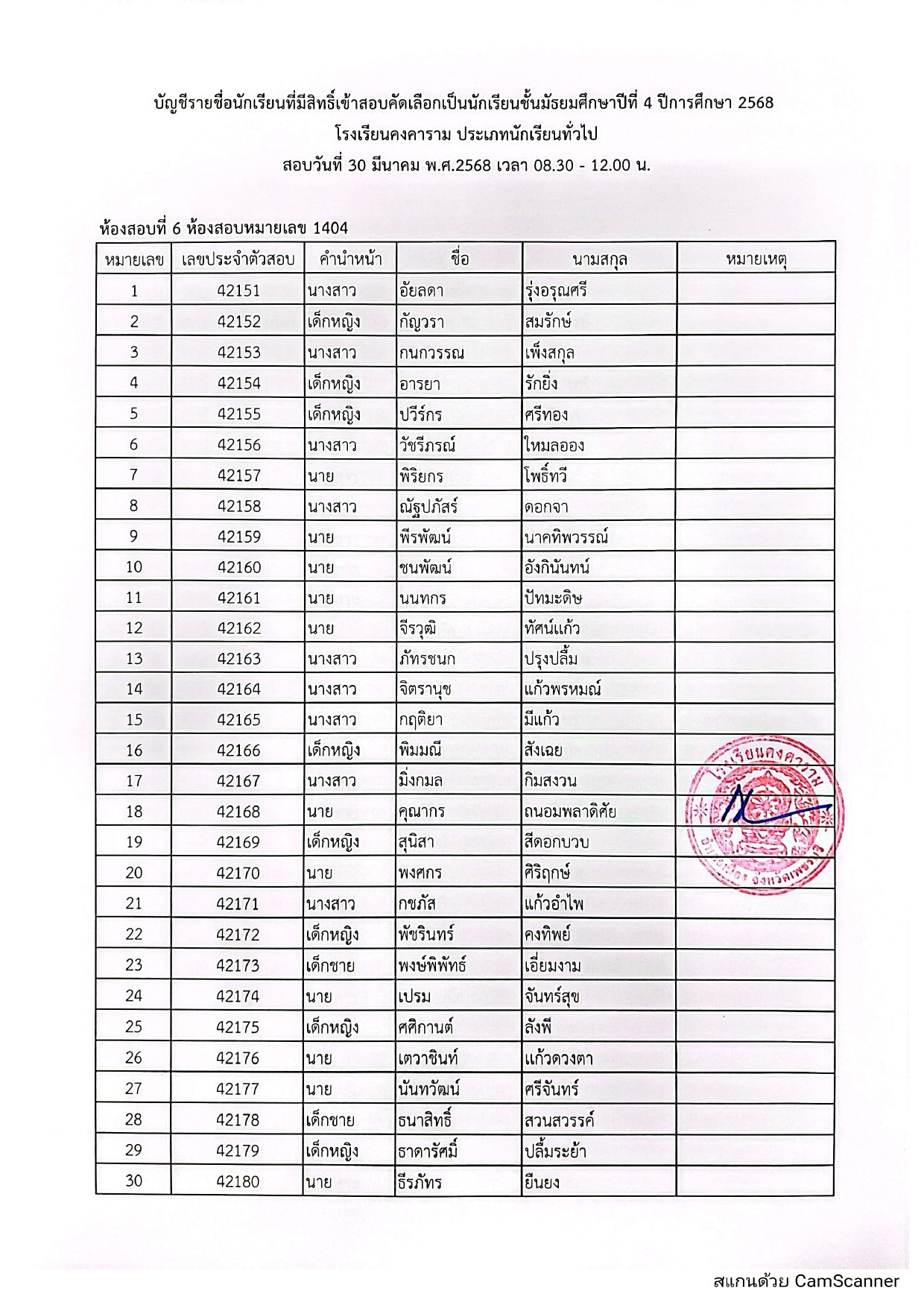 ประกาศรายชื่อนักเรียนที่มีสิทธิ์สอบคัดเลือกเข้าศึกษาต่อระดับชั้น ม.4 ปีการศึกษา 2568
