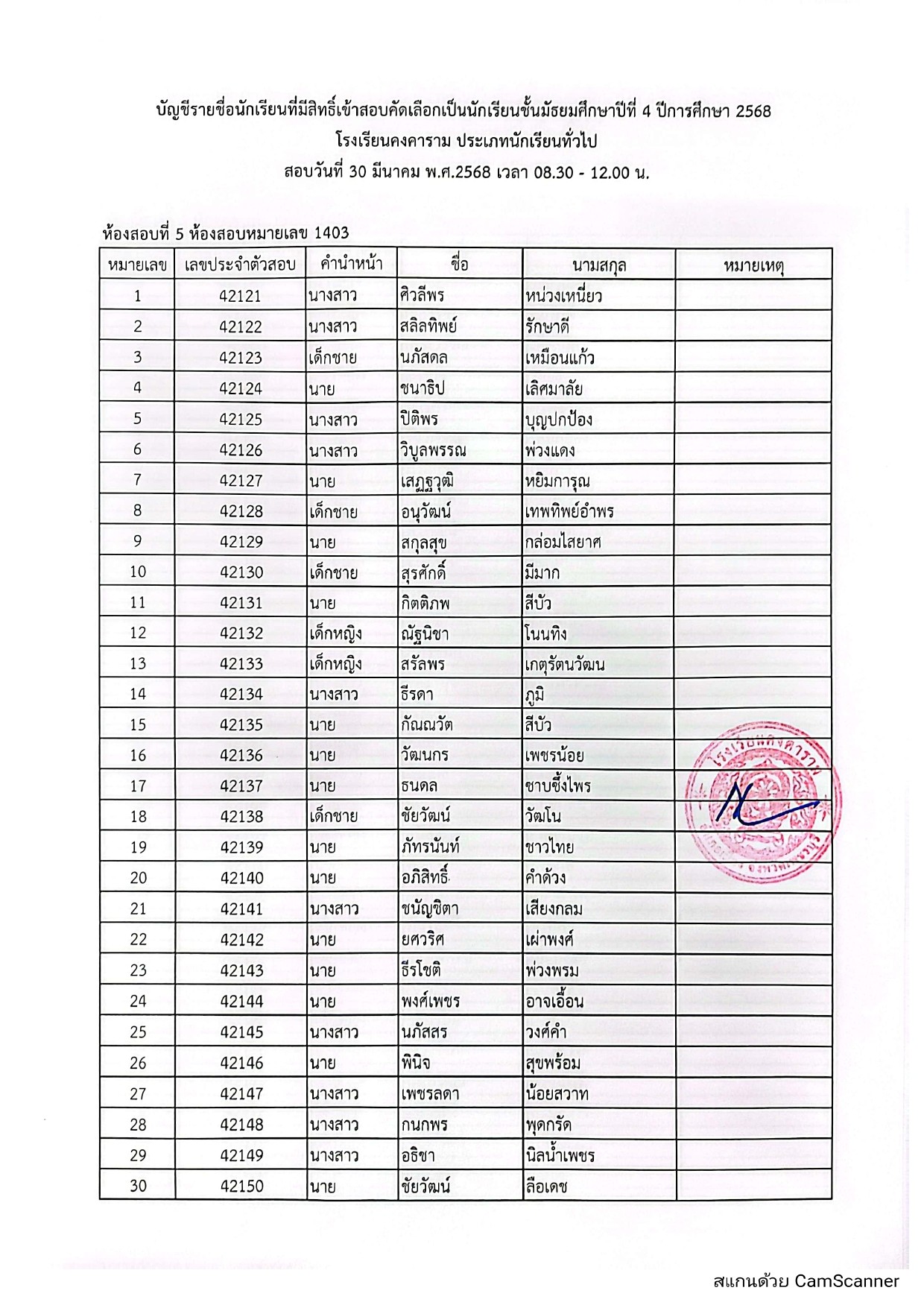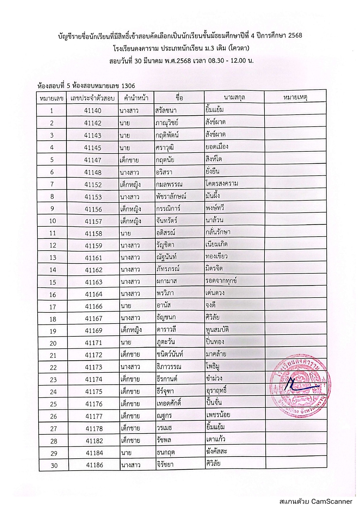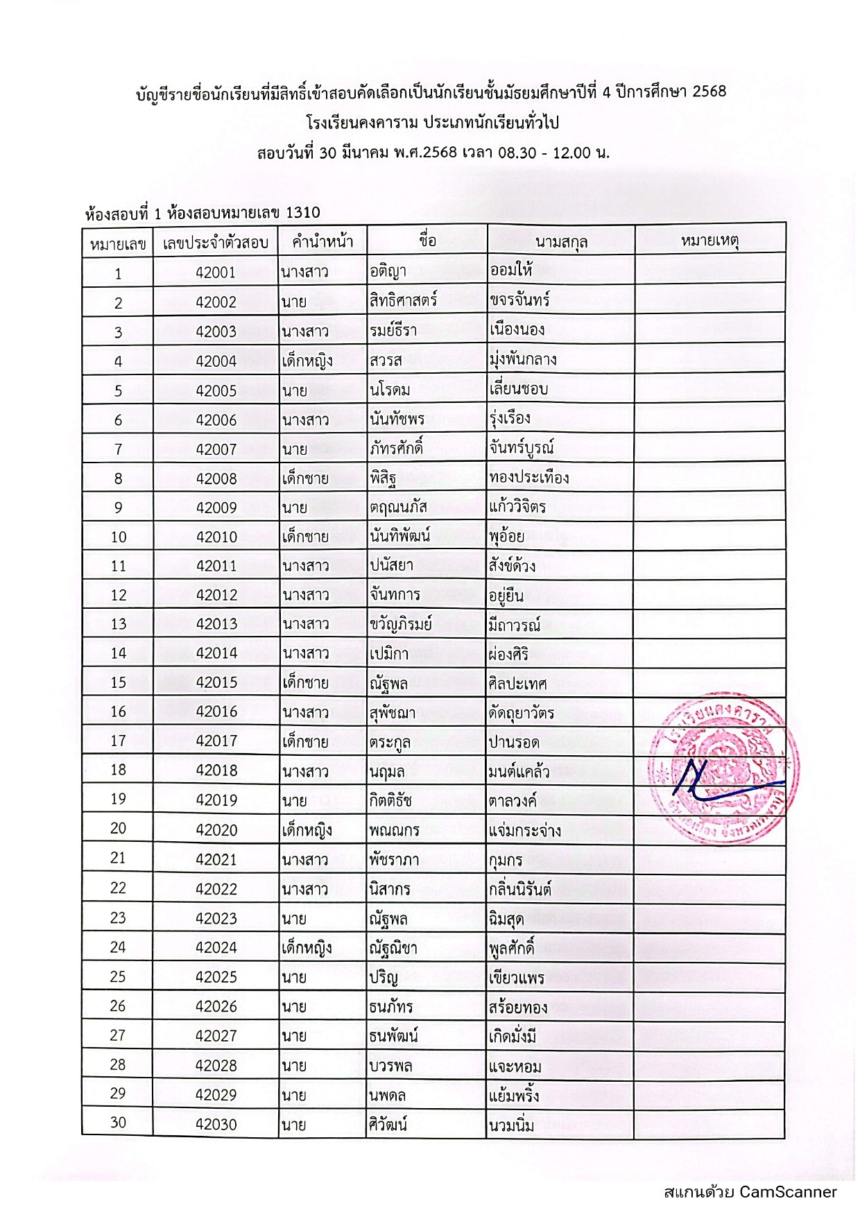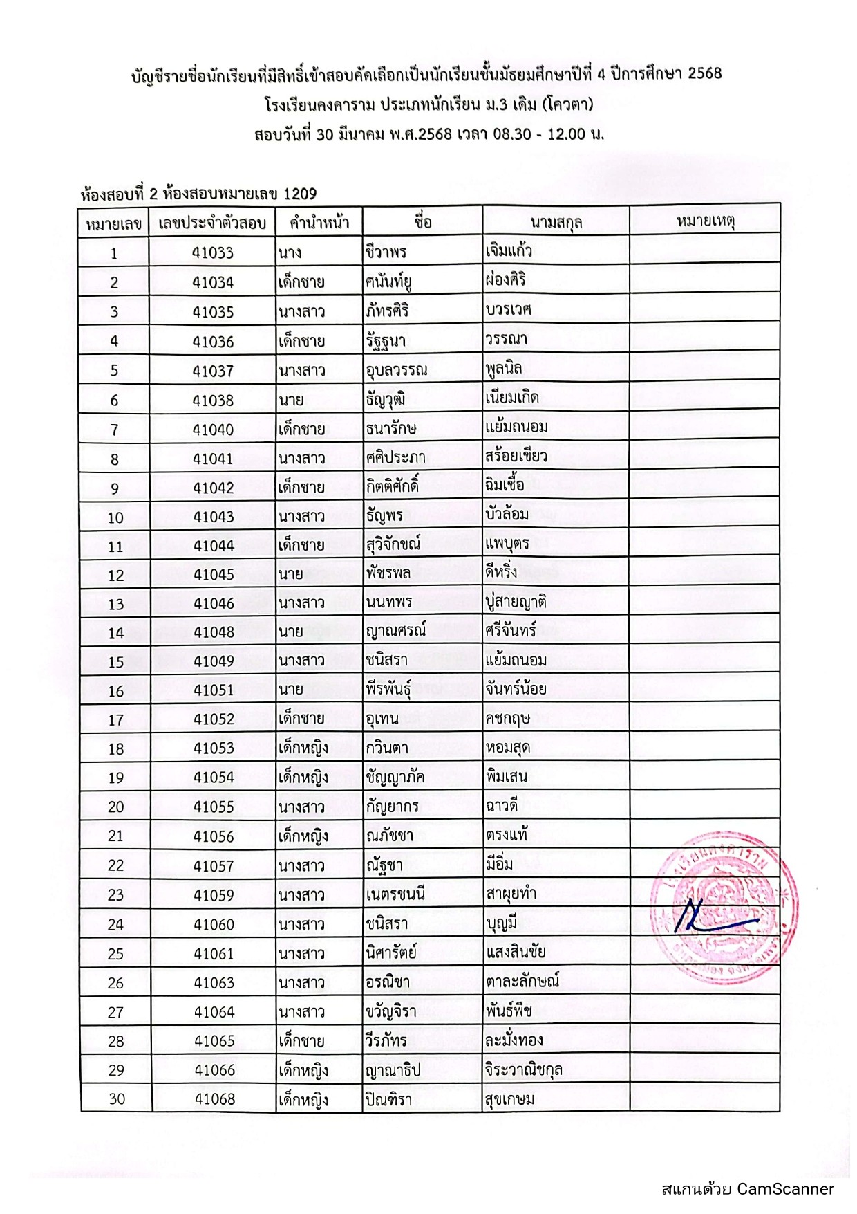 ประกาศรายชื่อนักเรียนที่มีสิทธิ์สอบคัดเลือกเข้าศึกษาต่อระดับชั้น ม.4 ปีการศึกษา 2568