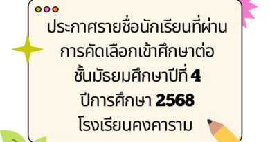 ประกาศผลการสอบคัดเลือกนักเรียนเข้าเรียน ชั้นมัธยมศึกษาปีที่ 4 ปีการศึกษา 2562