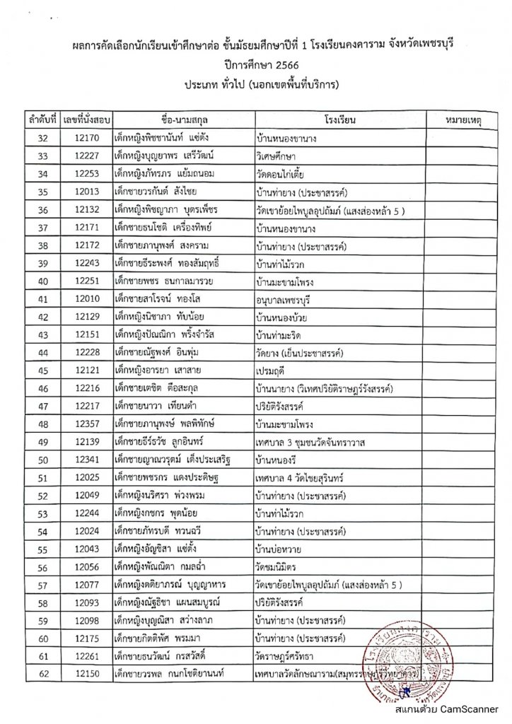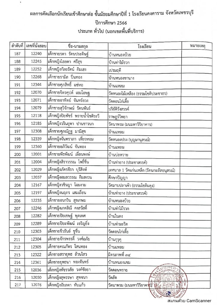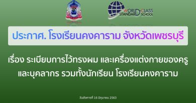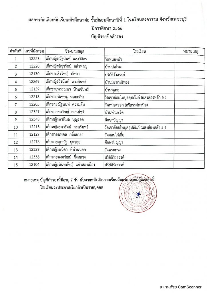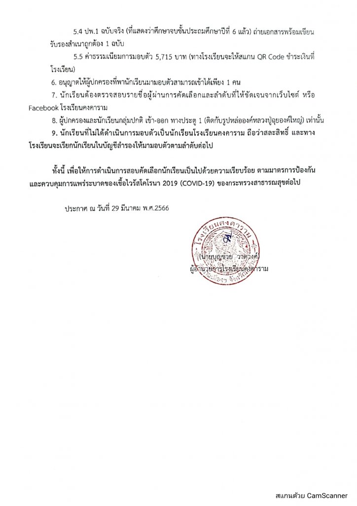 7. นักเรียนต้องตรวจสอบรายชื่อผู้ผ่านการคัดเลือกและลำดับที่ให้ชัดเจนจากเว็บไซต์ หรือ Facebook โรงเรียนคงคาราม