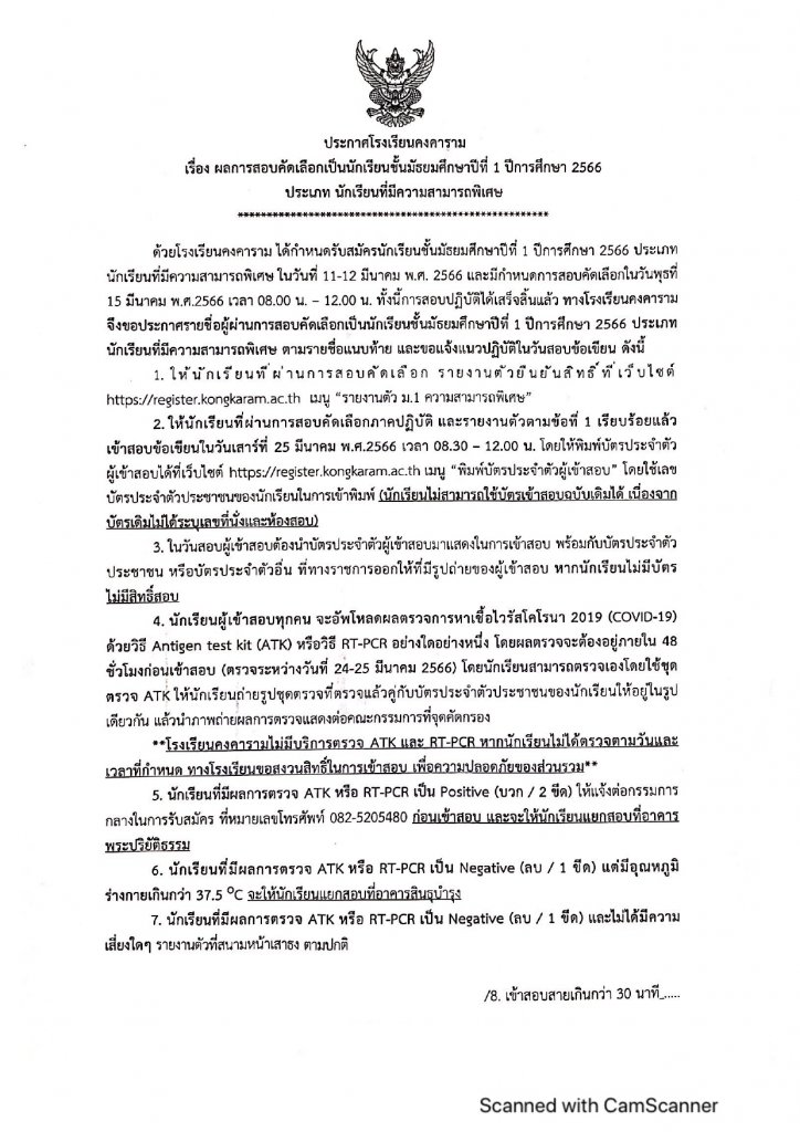 **โรงเรียนคงคารามไม่มีบริการตรวจ ATK และ RT-PCR หากนักเรียนไม่ได้ตรวจตามวันและเวลาที่กำหนด ทางโรงเรียนขอสงวนสิทธิ์ในการเข้าสอบ เพื่อความปลอดภัยของส่วนรวม**