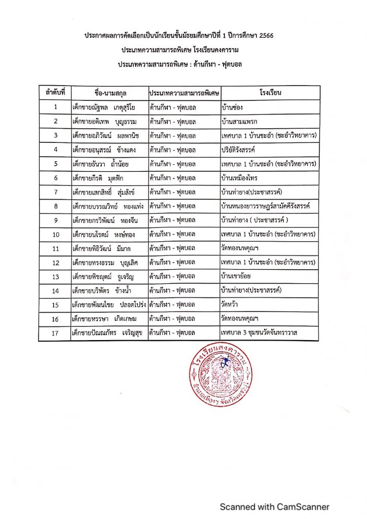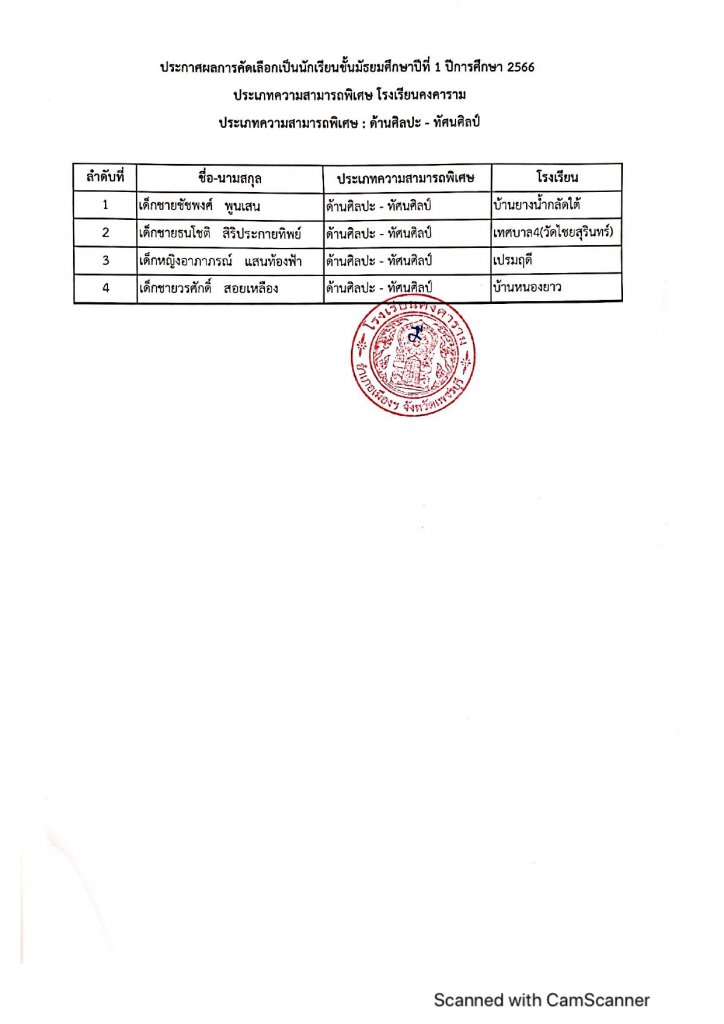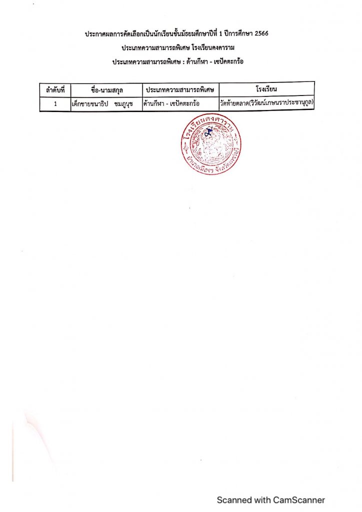 ด้วยโรงเรียนคงคาราม ได้กำหนดรับสมัครนักเรียนชั้นมัธยมศึกษาปีที่ 1 ปีการศึกษา 2566 ประเภทนักเรียนที่มีความสามารถพิเศษ ในวันที่ 11-12 มีนาคม พ.ศ. 2566 และมีกำหนดการสอบคัดเลือกในวันพุธที่ 15 มีนาคม พ.ศ.2566 เวลา 08.00 น. – 12.00 น. ทั้งนี้การสอบปฏิบัติได้เสร็จสิ้นแล้ว ทางโรงเรียนคงคาราม