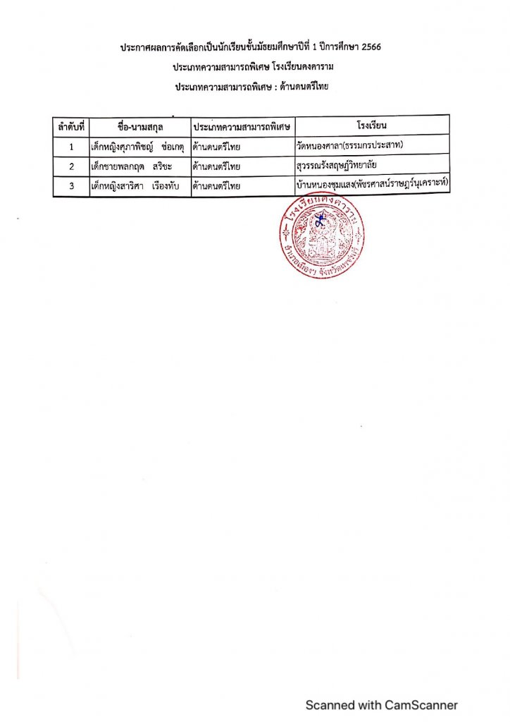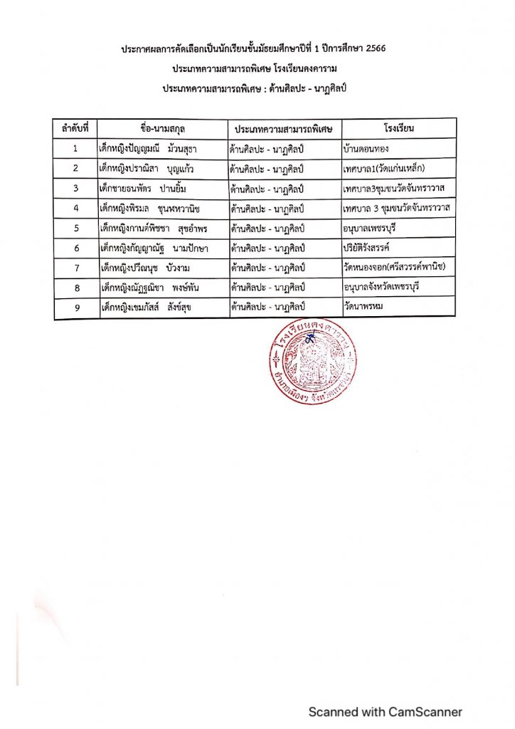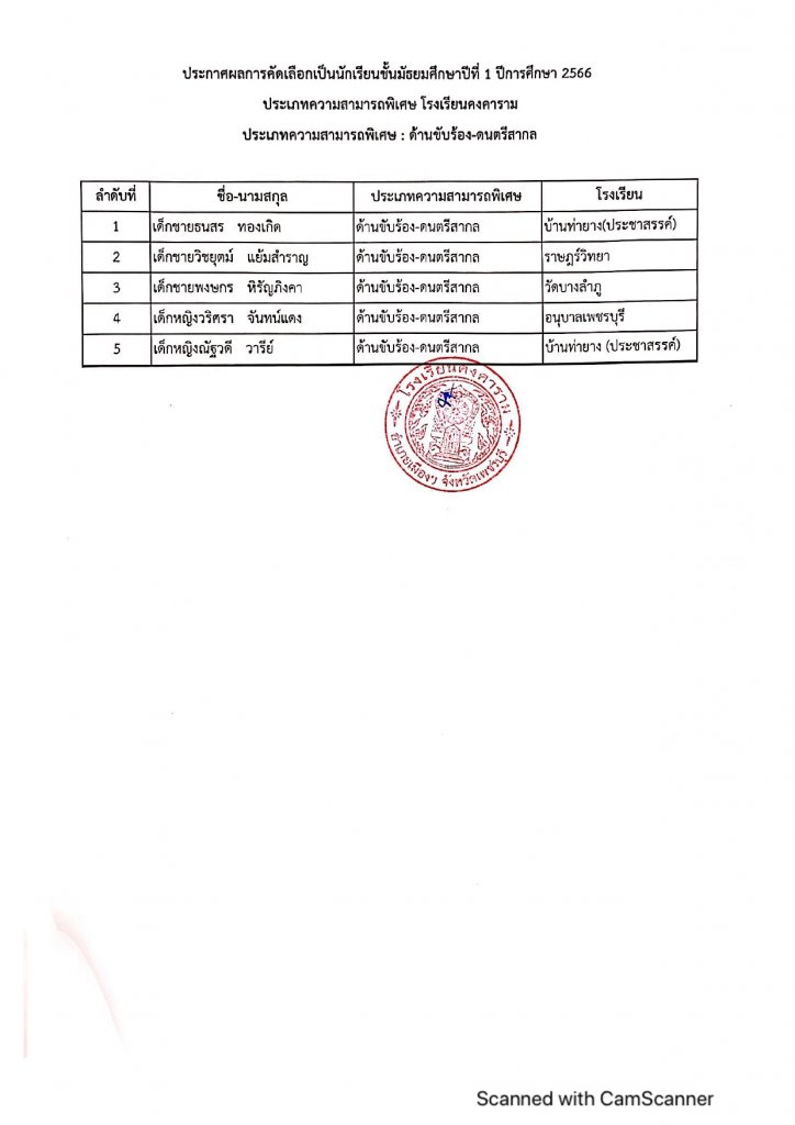 2. ให้นักเรียนที่ผ่านการสอบคัดเลือกภาคปฏิบัติ และรายงานตัวตามข้อที่ 1 เรียบร้อยแล้ว